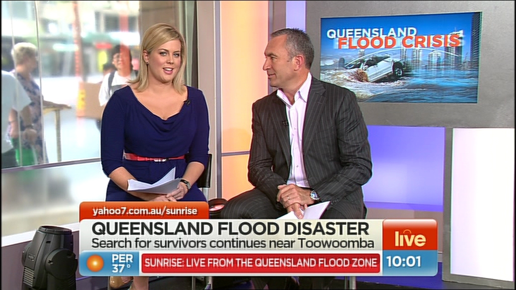 Sunrise Extra didn't have anything special on there and today was just waist up doing QLD flood coverage standing up. This weeks just about a write off due to the terrible events happening up North.