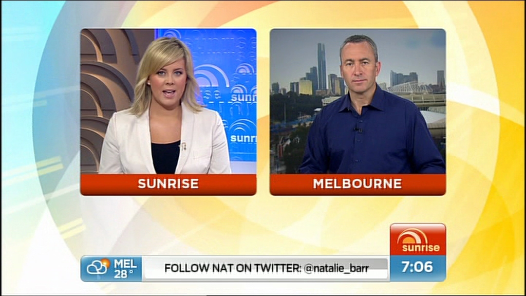 Haven't got the footage from today yet (Sunday), but have grabbed a few caps from Saturday Sunrise (15th Jan):