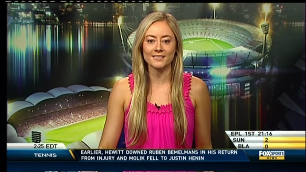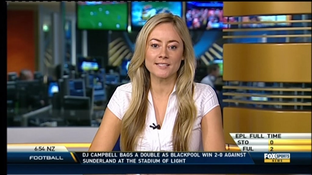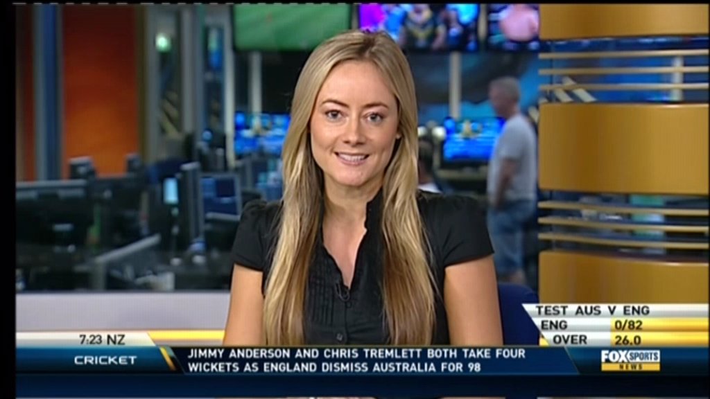 I just saw her on TV. Probably the least attractive girl they've found for the Fox Sports News, in my opinion. But they have a pretty high bench mark there with Lara Pitt, Alana Smith, Melanie McLaughlin, Jess Yates. It's a relative evaluation.