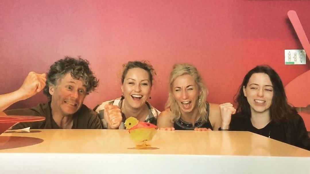 Quote: Racing hens at @triple_j for #cupday @zanrowe @_angemcc