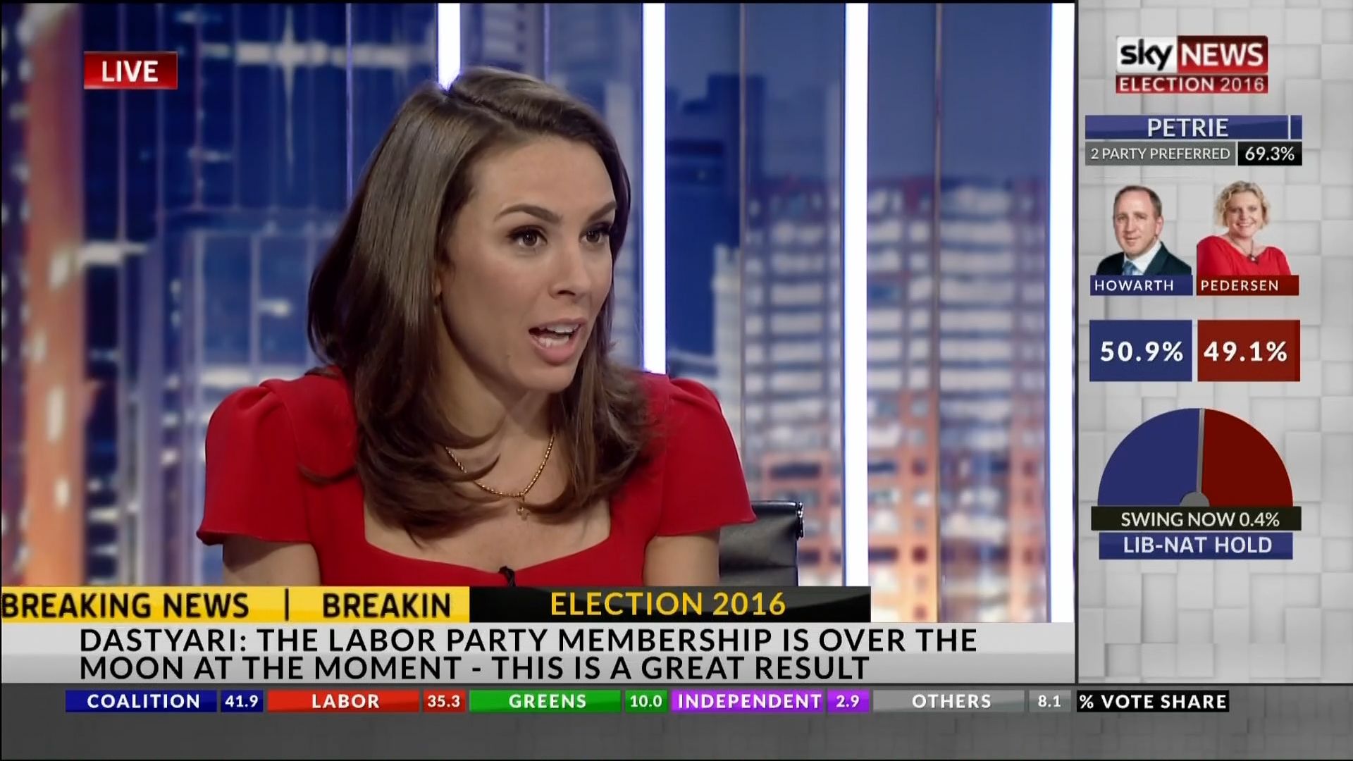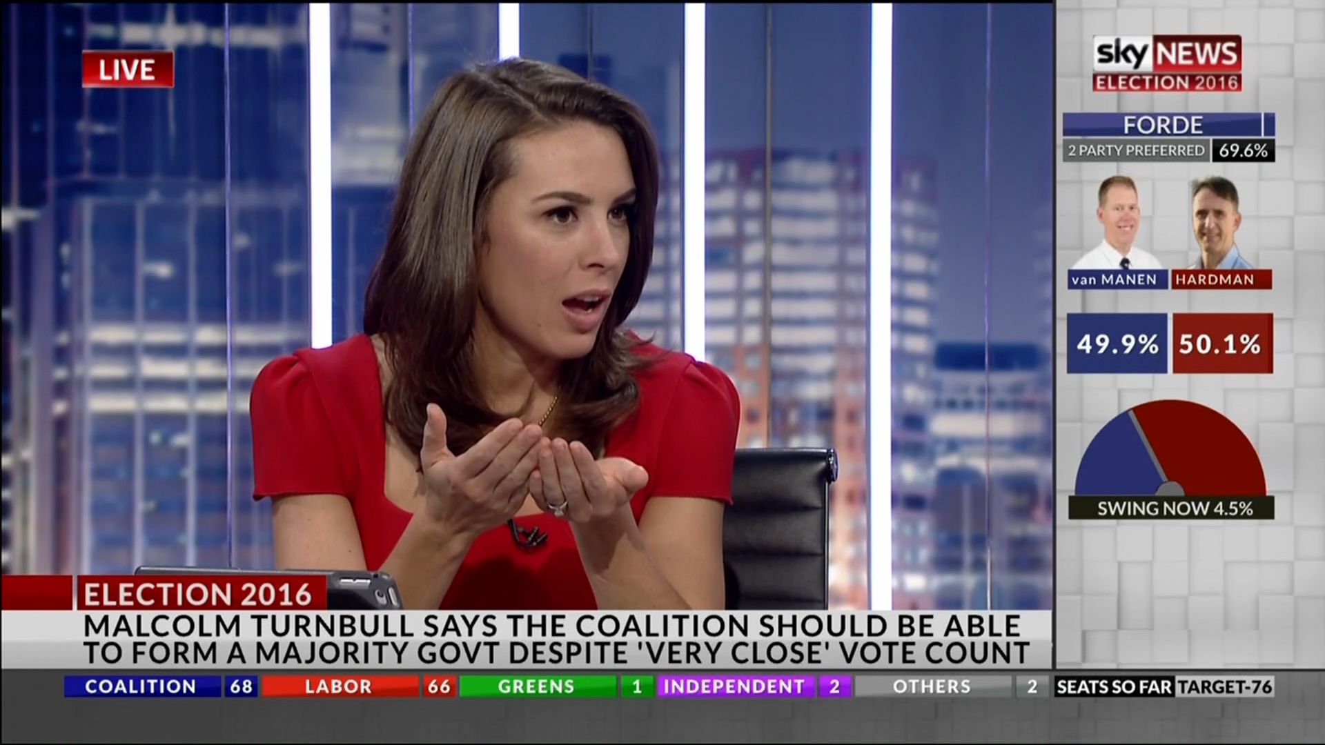 2016 Federal Election mega-post of the very beautiful Laura appearing throughout Saturday night and Sunday morning on Sky News HD on Foxtel.