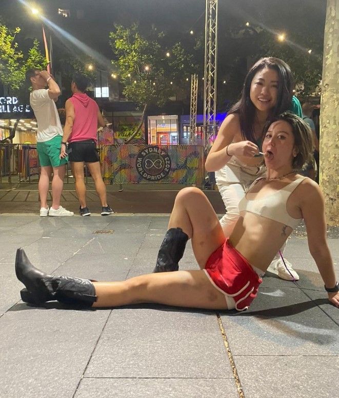 Hanging out with her gf.
