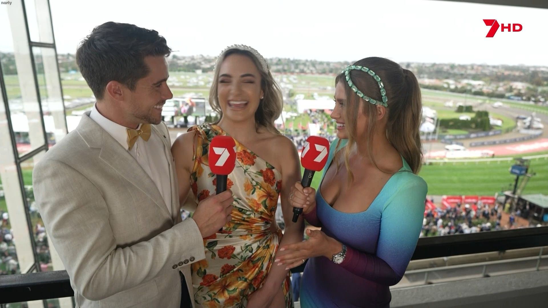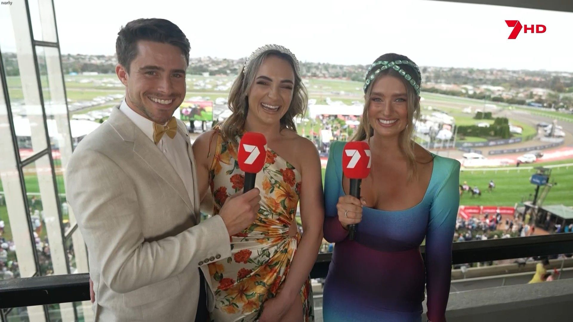 Just a call out to anyone on here capping. I've just seen a hot, perky babe on &s horse racing coverage. She was wearing this mostly blue, but multi coloured dress. I missed her name, but I hope one of you get it.