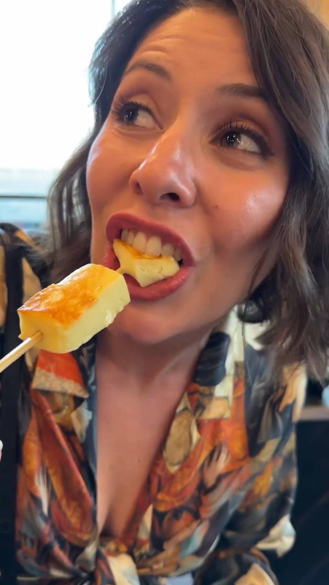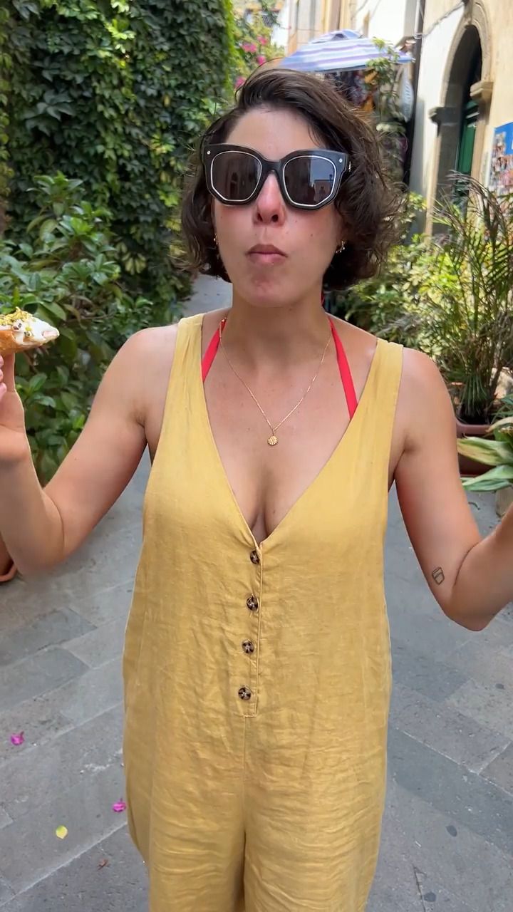 woman with nice cleavage putting things in her mouth...
