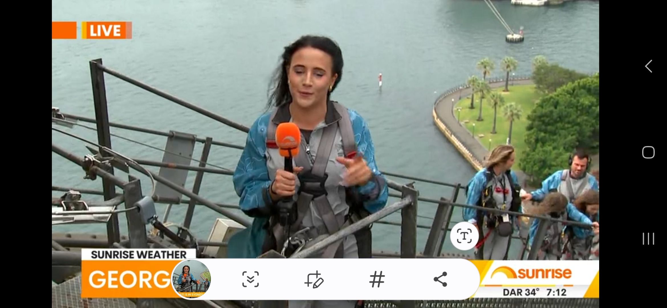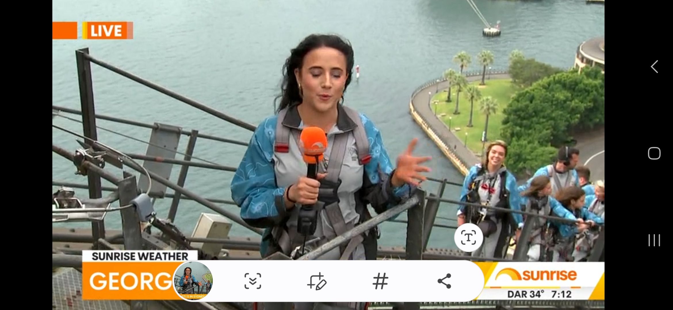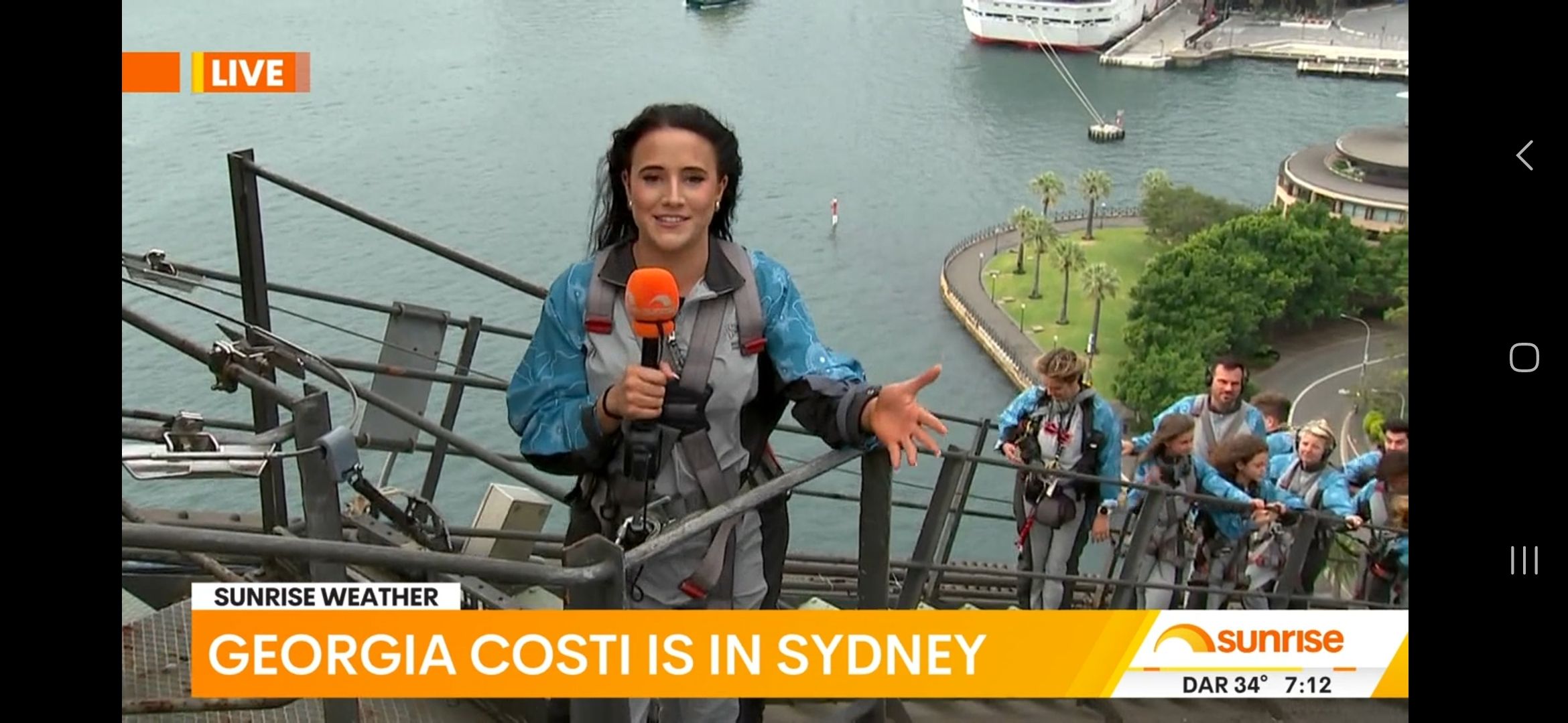 On the Sydney Harbour Bridge doing the weather for sunrise
