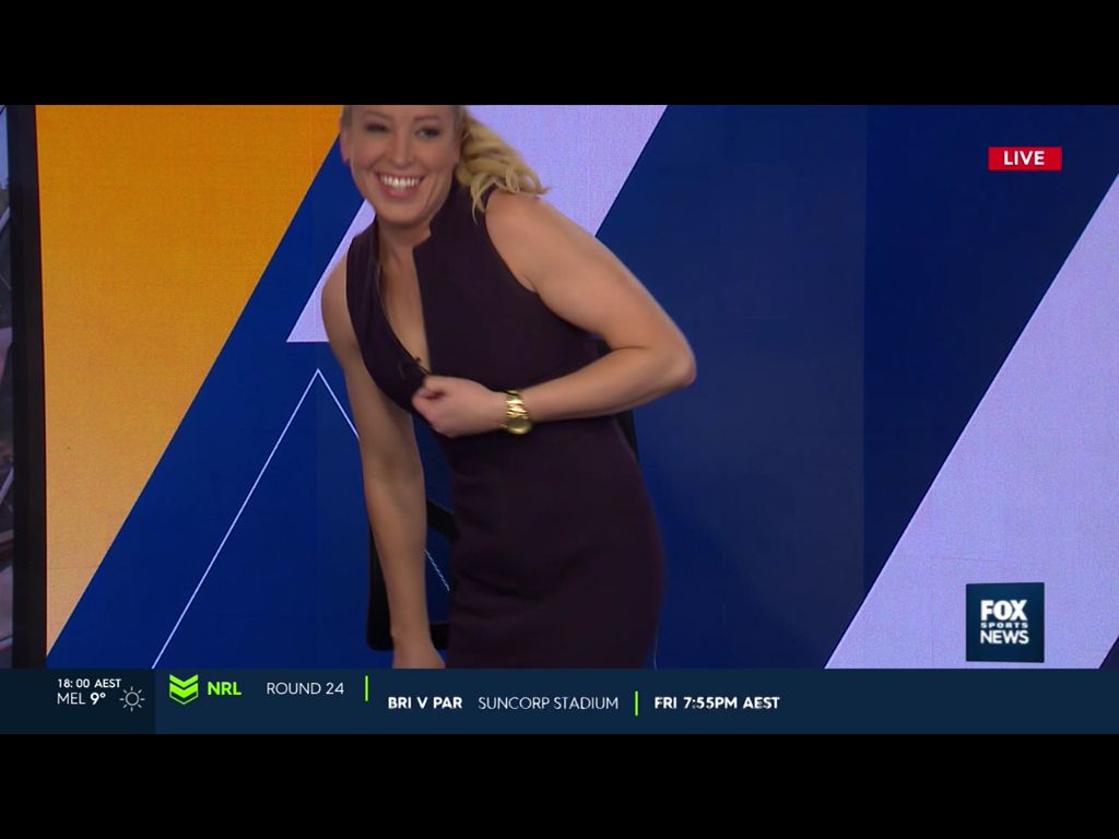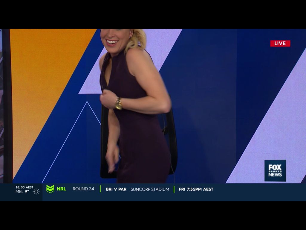 Alissa was just caught on live TV with her dress open putting a mic on Dan got a massive eyeful sitting beside her sadly the dam camera was on a bad angle  The show came on early and caught her out with her dress open  From what I've got she had to change mic's at the last min and she had to stand up unzip her dress all the way down to put hide the mic thingy in her dress now either A. They lost track of time and they came on the air or B. Some legend saw her with her top open and decide to go live lol she was facing the camera but sadly she turned away at the exact second they came on the air in fact you see her turning as they went to air a few seconds earlier and it would of been