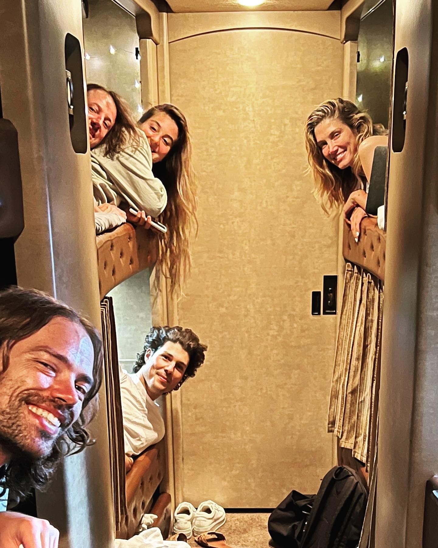 from the depths of my camera roll😂 tour bus realness. no shower or washing machine of course no wardrobe or gym or a place to tan. or good food!!! meaning group laundry watching 🧺workouts together and laying in the sun in a car park….. All my clothes tucked in a bunk! madness. and i had SSSOOO much fun LOVED every moment❤️ wanted to be on the bus instead of hotels!!! ready to go again ha