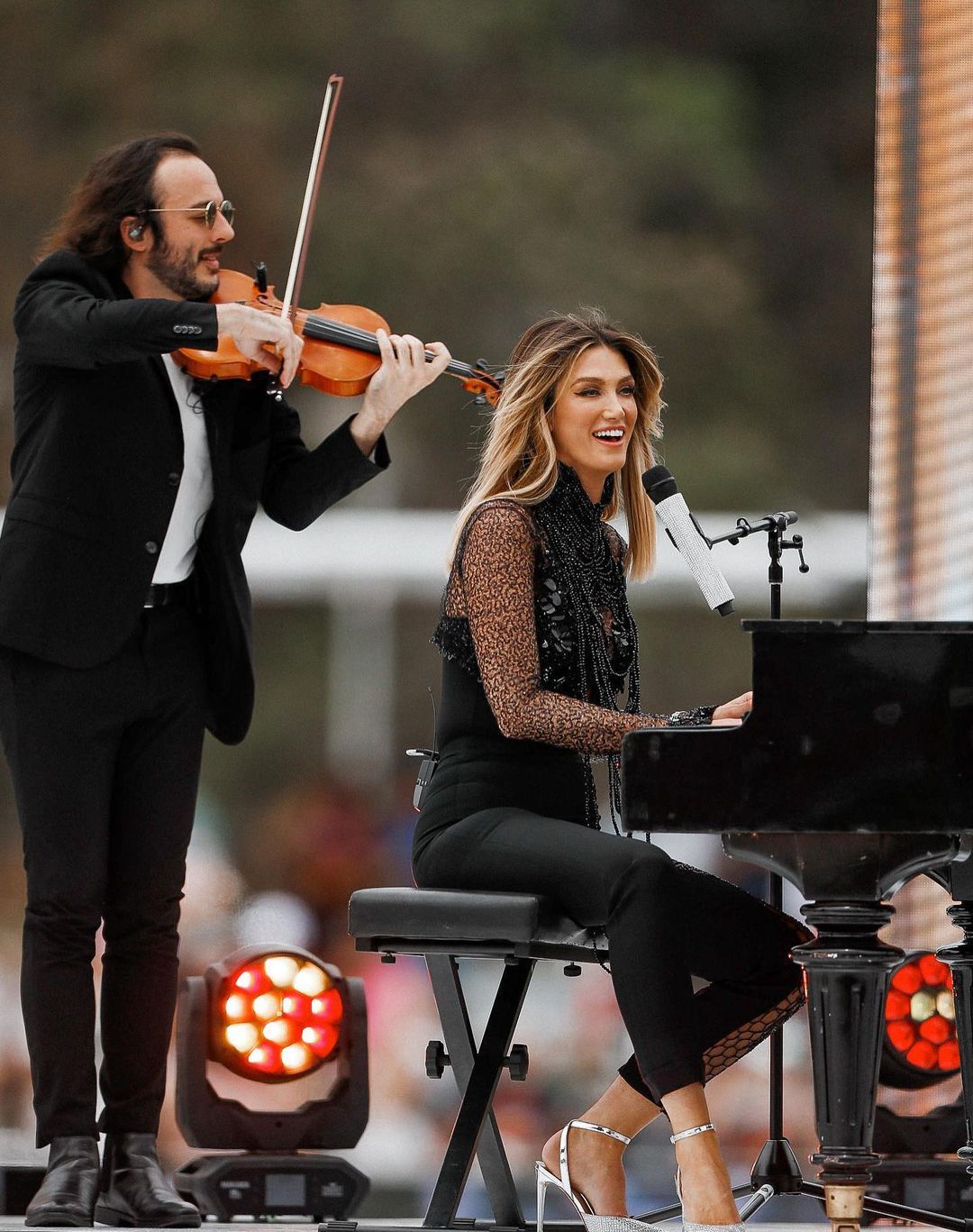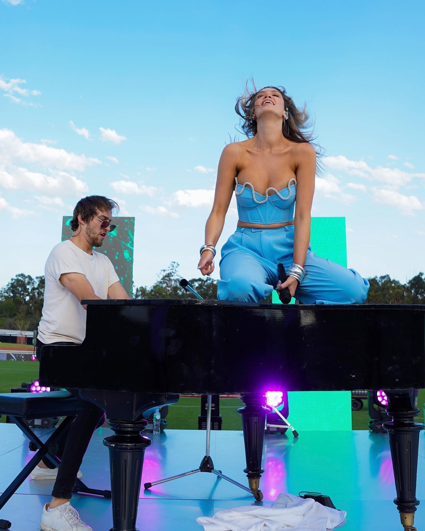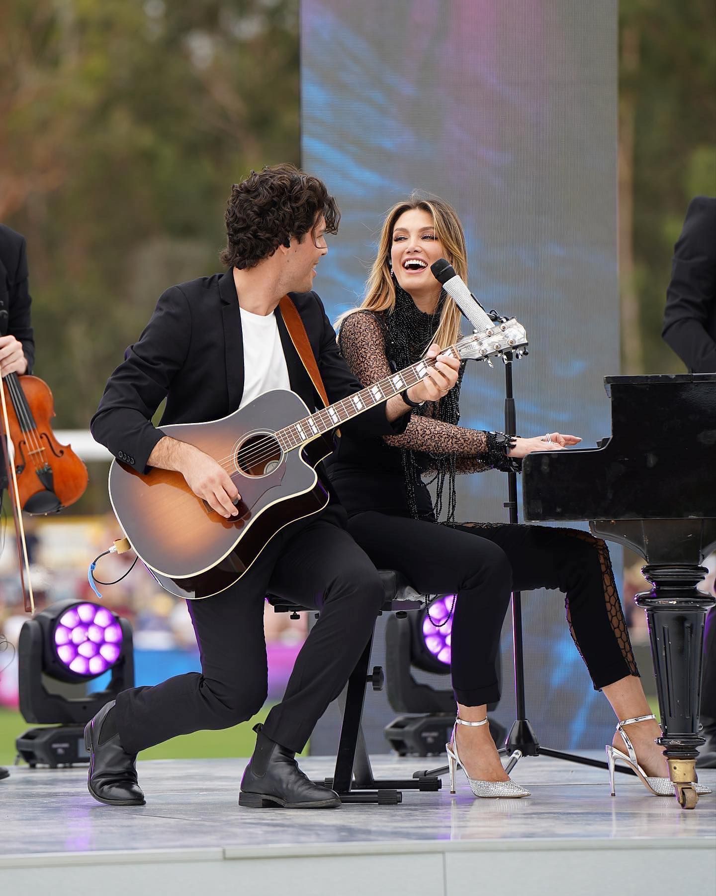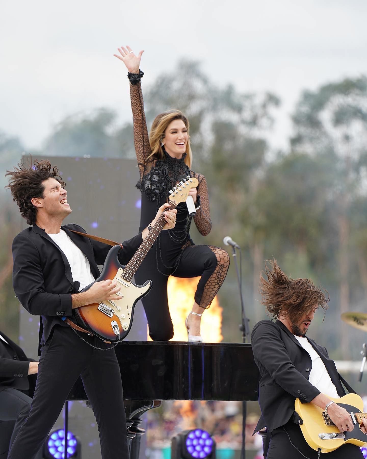 🔥🔥🔥 Epic day with @aflwomens!!!! So happy we got to play for you before the big game and rock it. Up on piano she goes 🤸♀️💫 Girl power. 🫶🏼🏉 #aflw