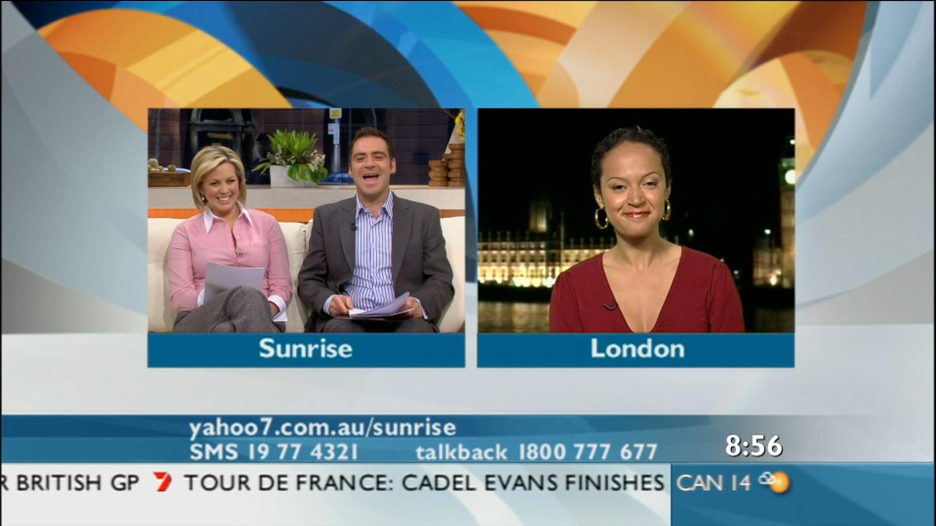 Hafner joined Seven News Sydney in April 2003.[2] Hafner presented the weekday weather on Seven News's 6pm Sydney and Canberra bulletin until her final appearance on the 22nd of December 2006. Nuala left to work overseas, and is currently filing reports from Seven's London Bureau. In 2008, she has taken a more active role in the network, appearing regularly on Sunrise, Weekend Sunrise, and the now cancelled Seven HD show, The NightCap.