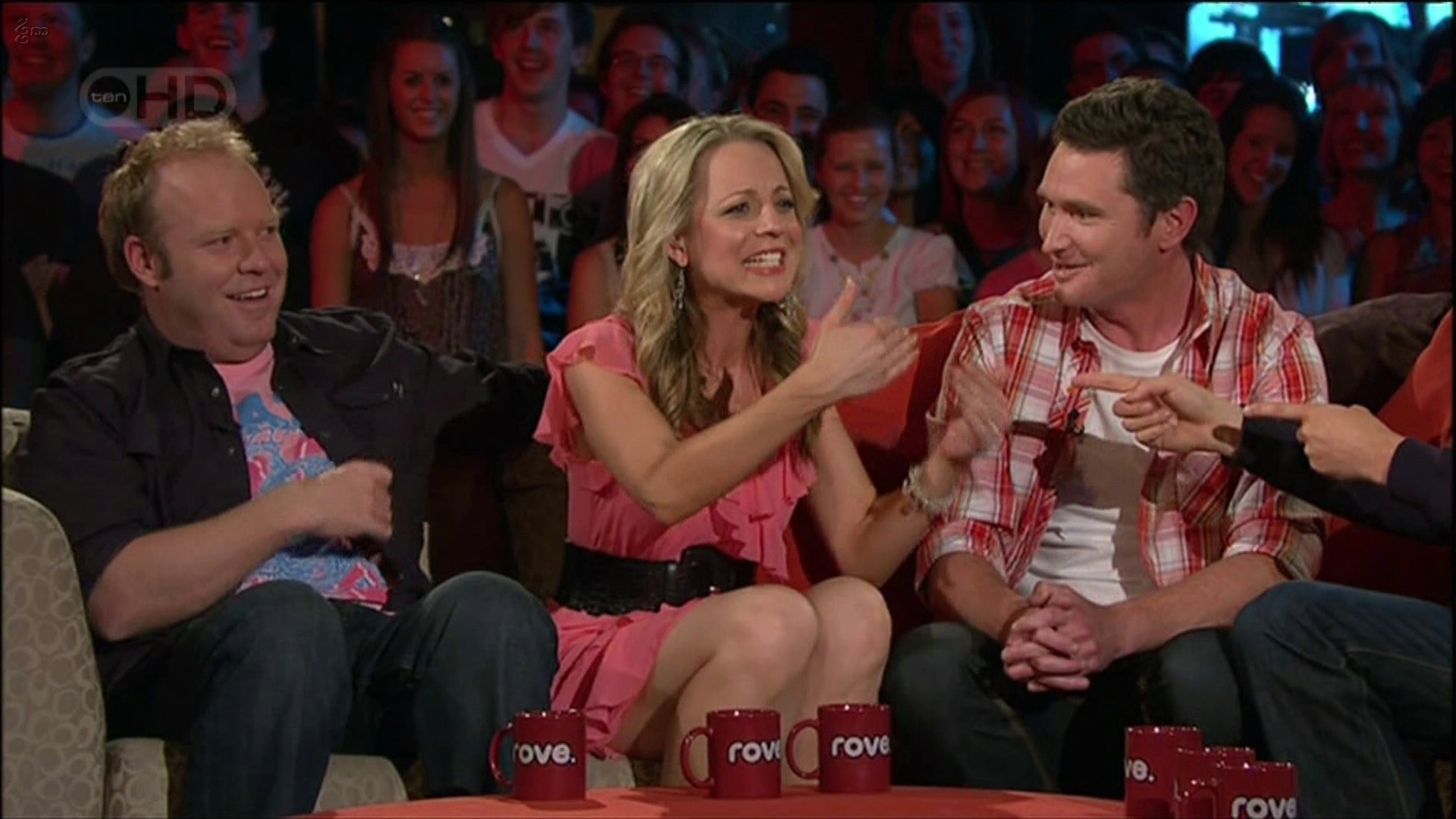 Started watching Monday nights show when they were live at Bondi and realised that when they panned back you could see Carrie's legs through the glass table... was waiting for a "moment" but missed the second half of the show.. anyone get a glimpse of something they shouldn't have? :smile: