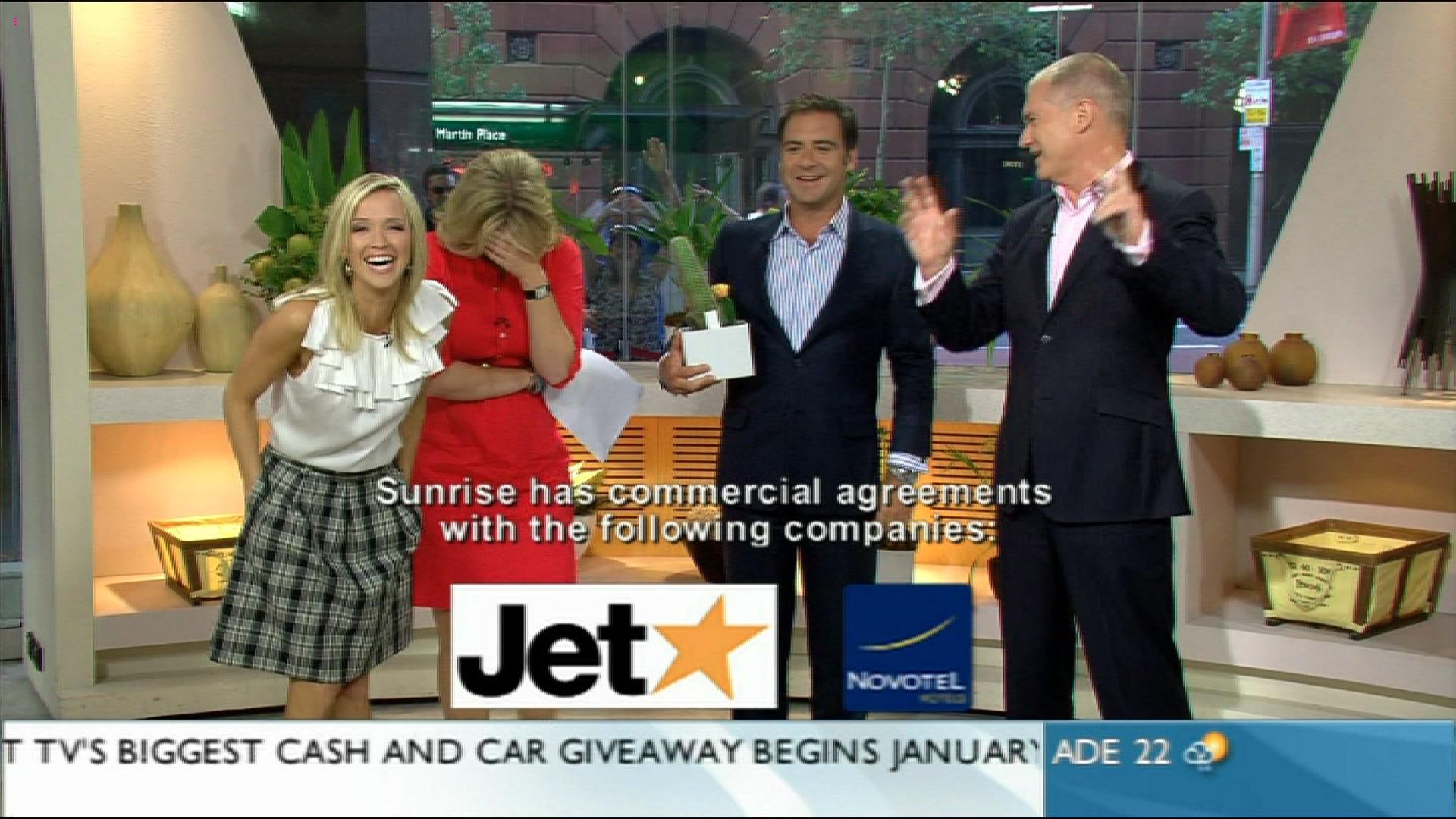 I have to say Sarah compliments Sammy nicely on Weekend Sunrise. Now all we need is to replace Andrew "Fuckwit" O'Keefe with Mel Doyle, get Monique Wright (remember her?) to do sport and Fifi for the weather and we got ourselves a nice little reason to wake up Sunday mornings