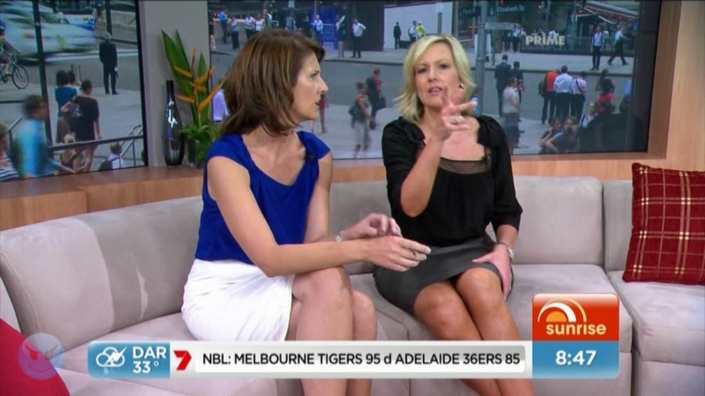 Cheers for those s_and_o. I too noticed that the couch has gone missing. She's pretty much been behind the desk the entire show the last couple of days. No leg action whatsoever from Mel or Nat. :no: