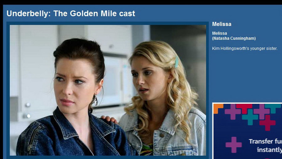 "Underbelly: The Golden Mile" - Australia (third season title) .... Melissa Hollingsworth