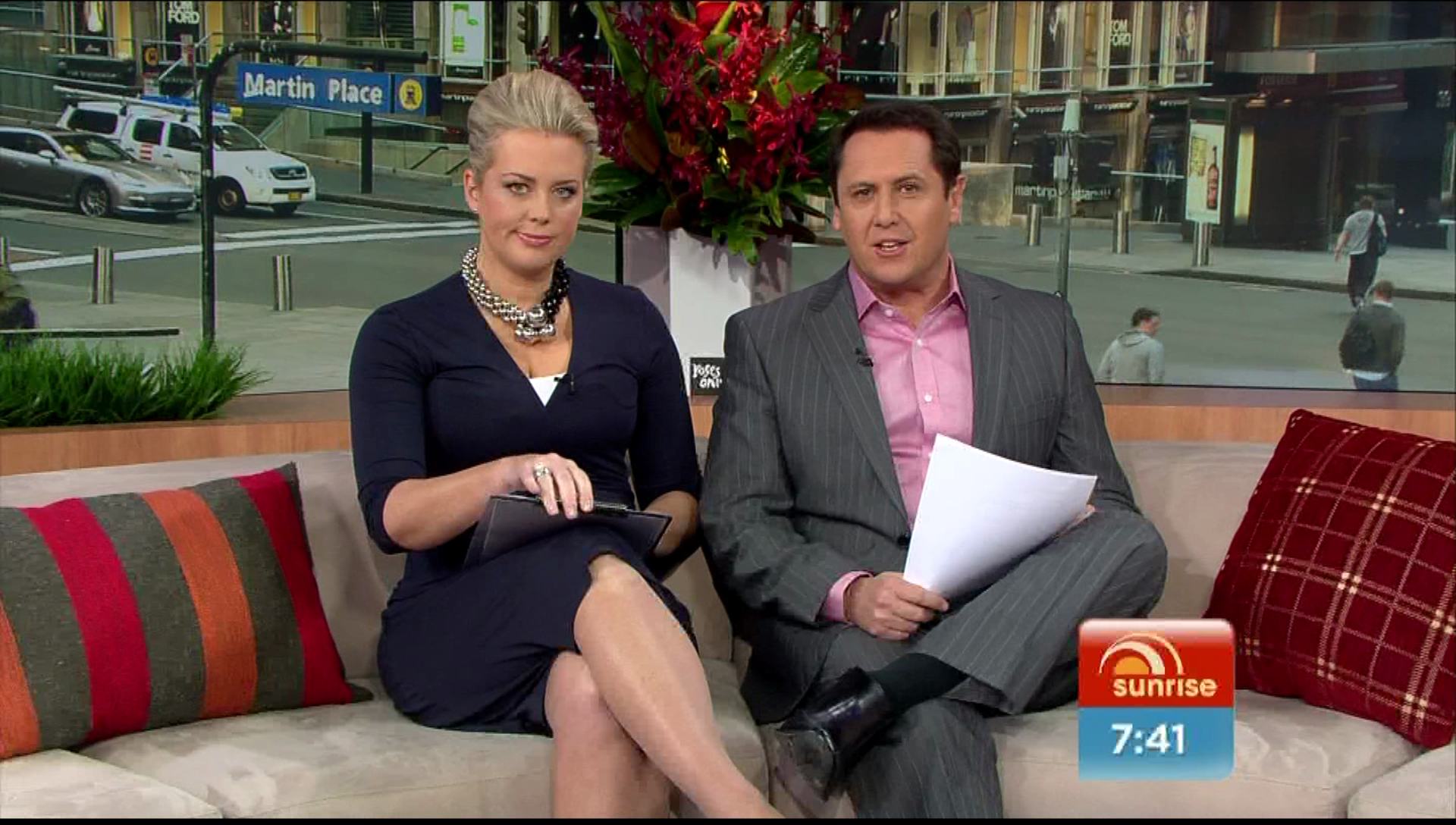 Sam is reading the news on Sunrise today and for the next two weeks and they did a side view, i never really noticed how big her boobs are but they are massive.