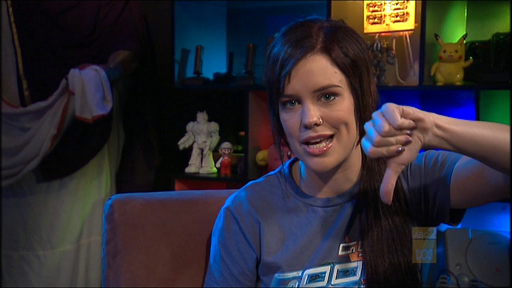 I'm hoping that the 'Powers that be' at ABC2 will realise that... "Hot Co-host willing to show a bit of boob + video game geeks = RATINGS"