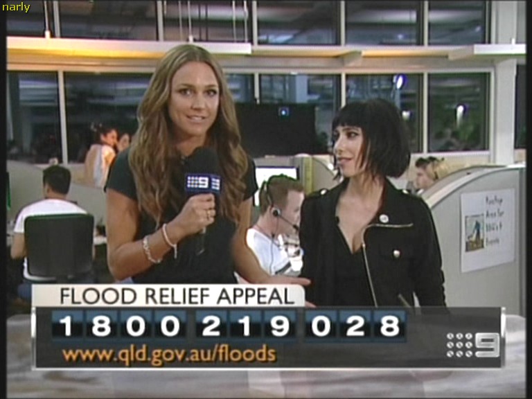 Some pics of Natalie at a telethon for the flood victims over the weekend.