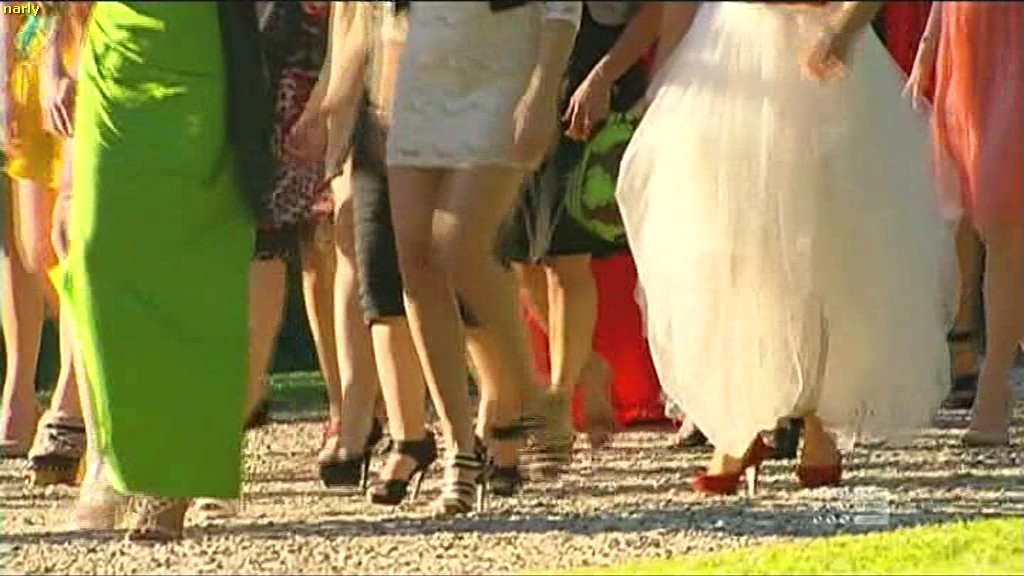 I only caught the promo once with them all line dancing in wedding dresses but I think a lot of leg and thigh was shown.