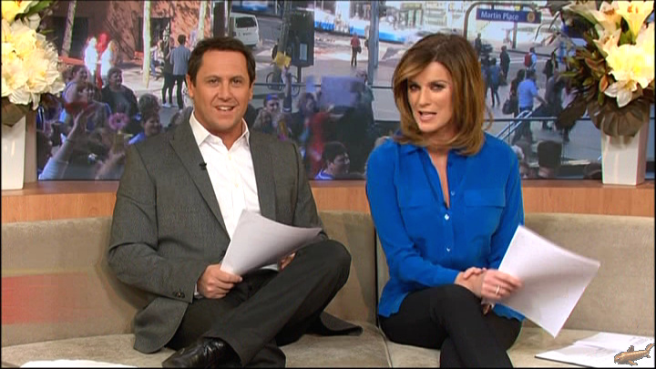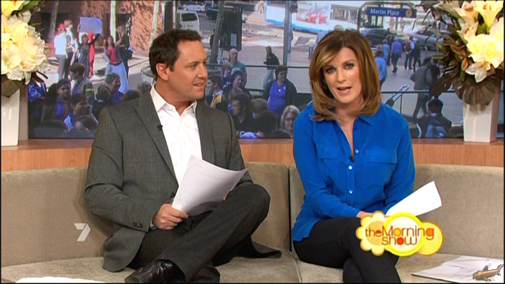 Nice little upskirt today. She's interviewing some guy who's going on about saving money. She's sitting on a stool.