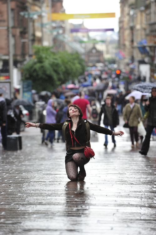 This shows Emily Browning, who stars in the lead role of Cass, out on Buchanan Street in Glasgow.
