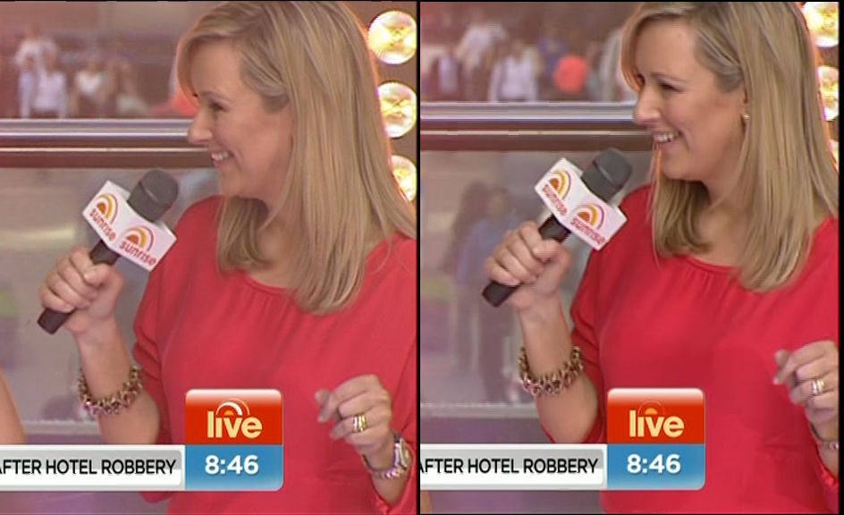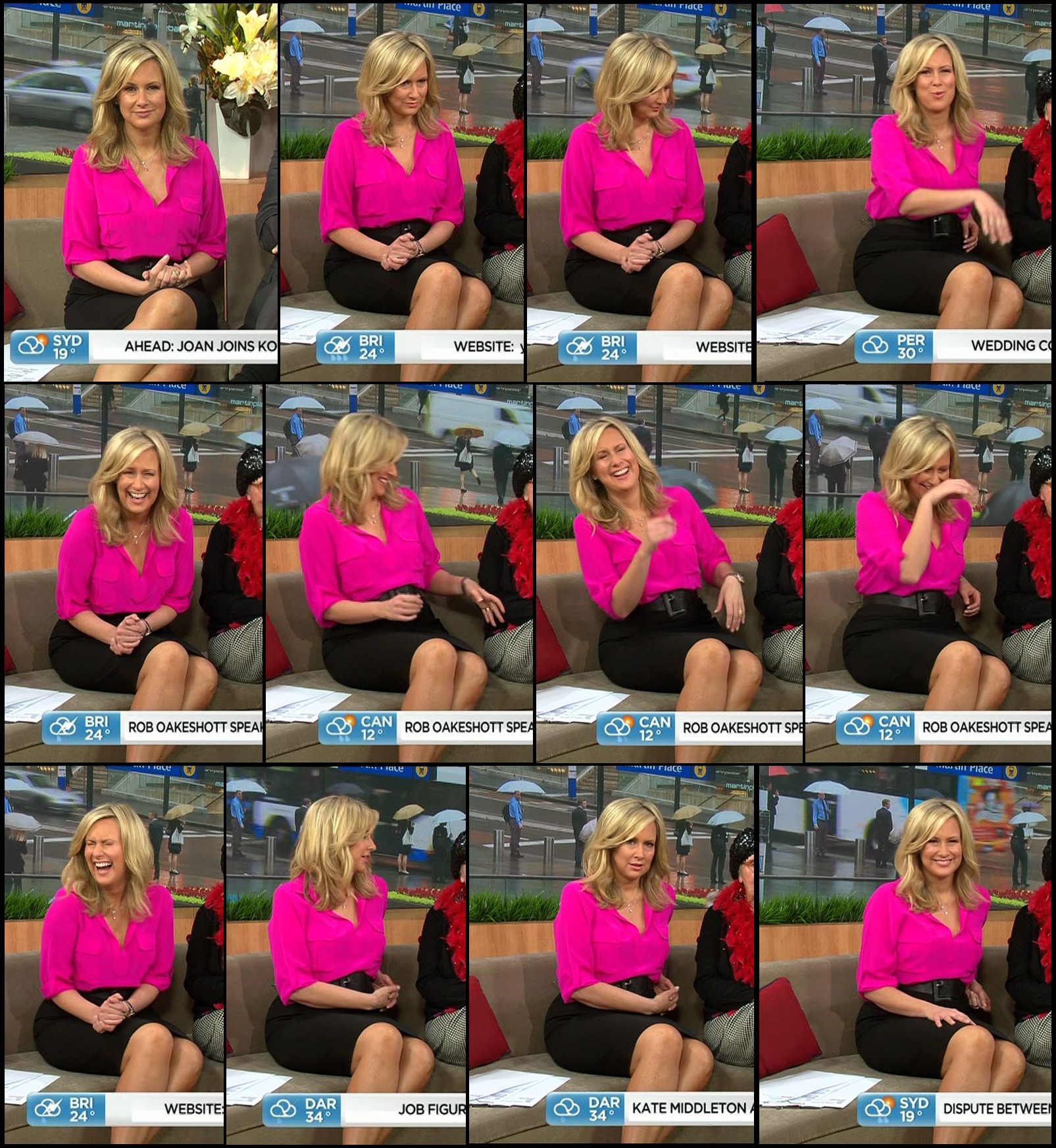Today's dress looked boring while Mel was seated but damn, it looked good (lots of leg) when she was standing outside the studio at the end of the show.
