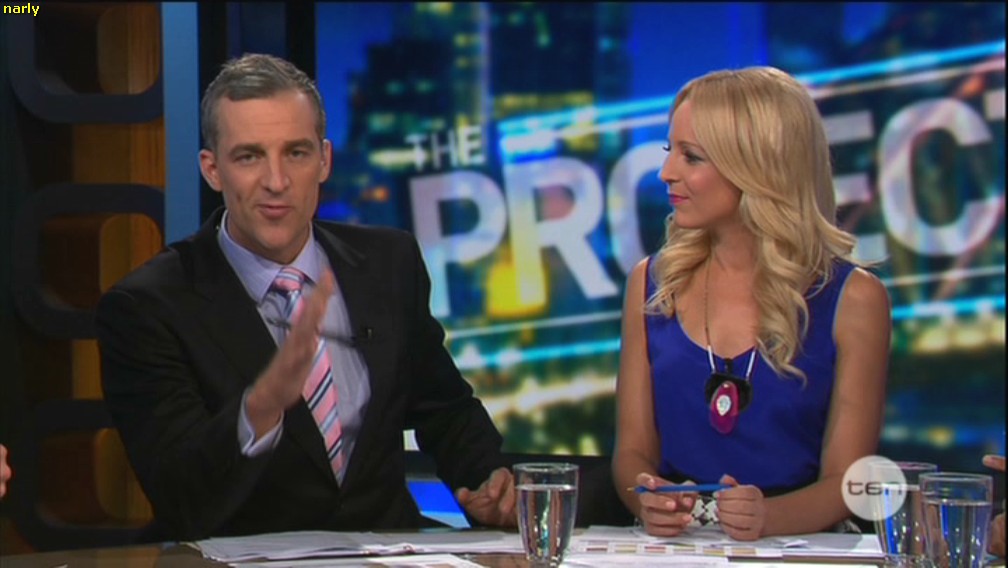 Hi I hope someone capped Carrie yesterday on The Project. She looked great in red and was showing a lot of cleavage