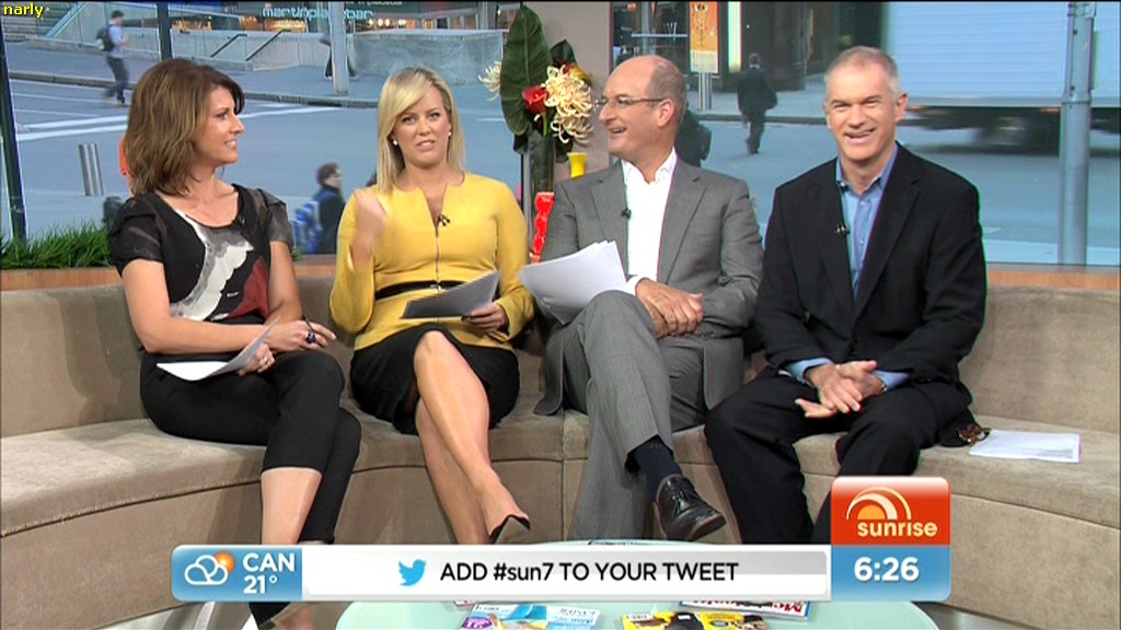 And what I like is that the Nat Barr legs have such a smooth, natural skin look. She's not so into the orange fake tan stain which looks so artificial - which is what Mel Doyle and Kylie Gillies tend overdo.