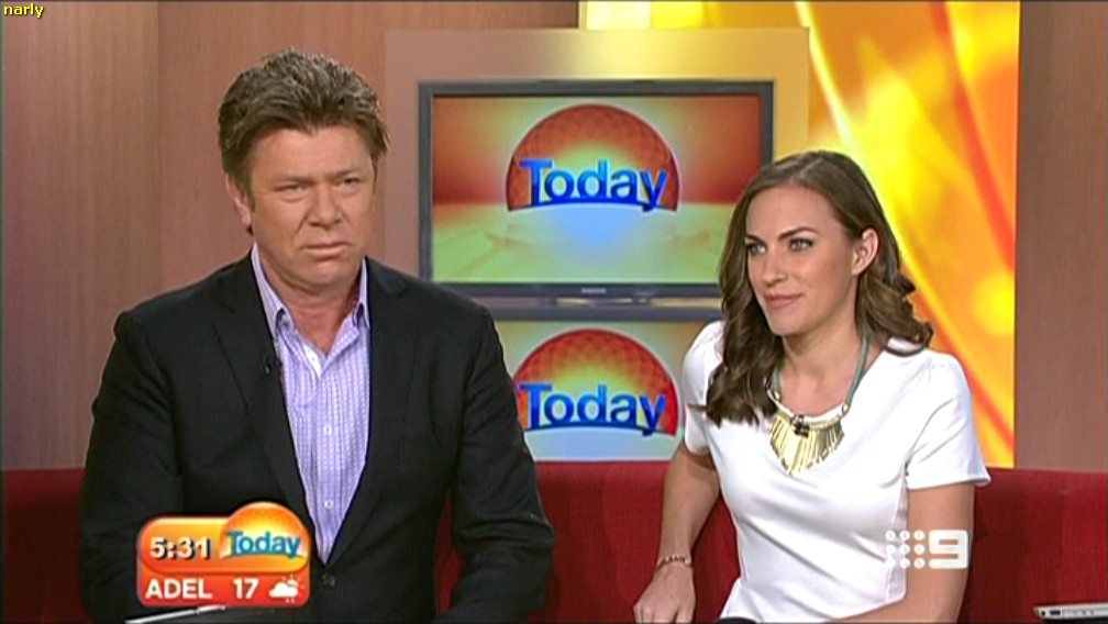 Karl got into Roz' script, leaving her a bit awkward this morning, but she still looked smokin' hot :oops: