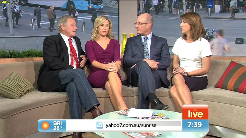 the 2nd one is from 6:40am and it's just after they cut back from Edwina, nat sees herself on the monitor and tries to cover up her legs with her hands, it's soo sexy and cute, someone should cap a video of it and share it! it's awesome