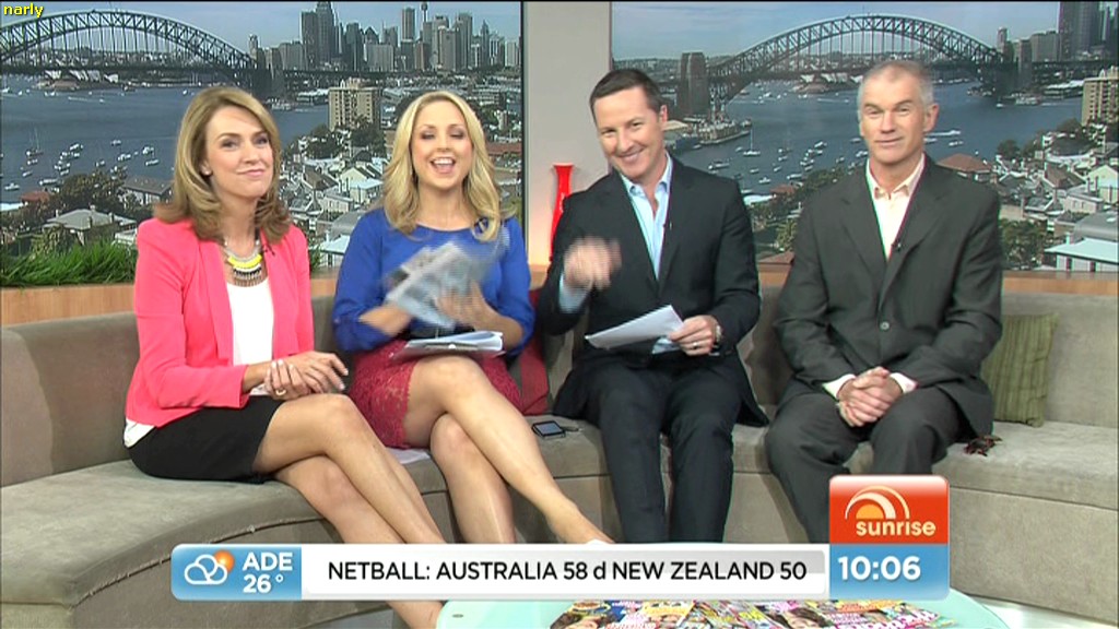 5/10/13Plenty of leg under that table , can just be seen through the top. Problem with Weekend Sunrise , News person rarely gets any couch time.