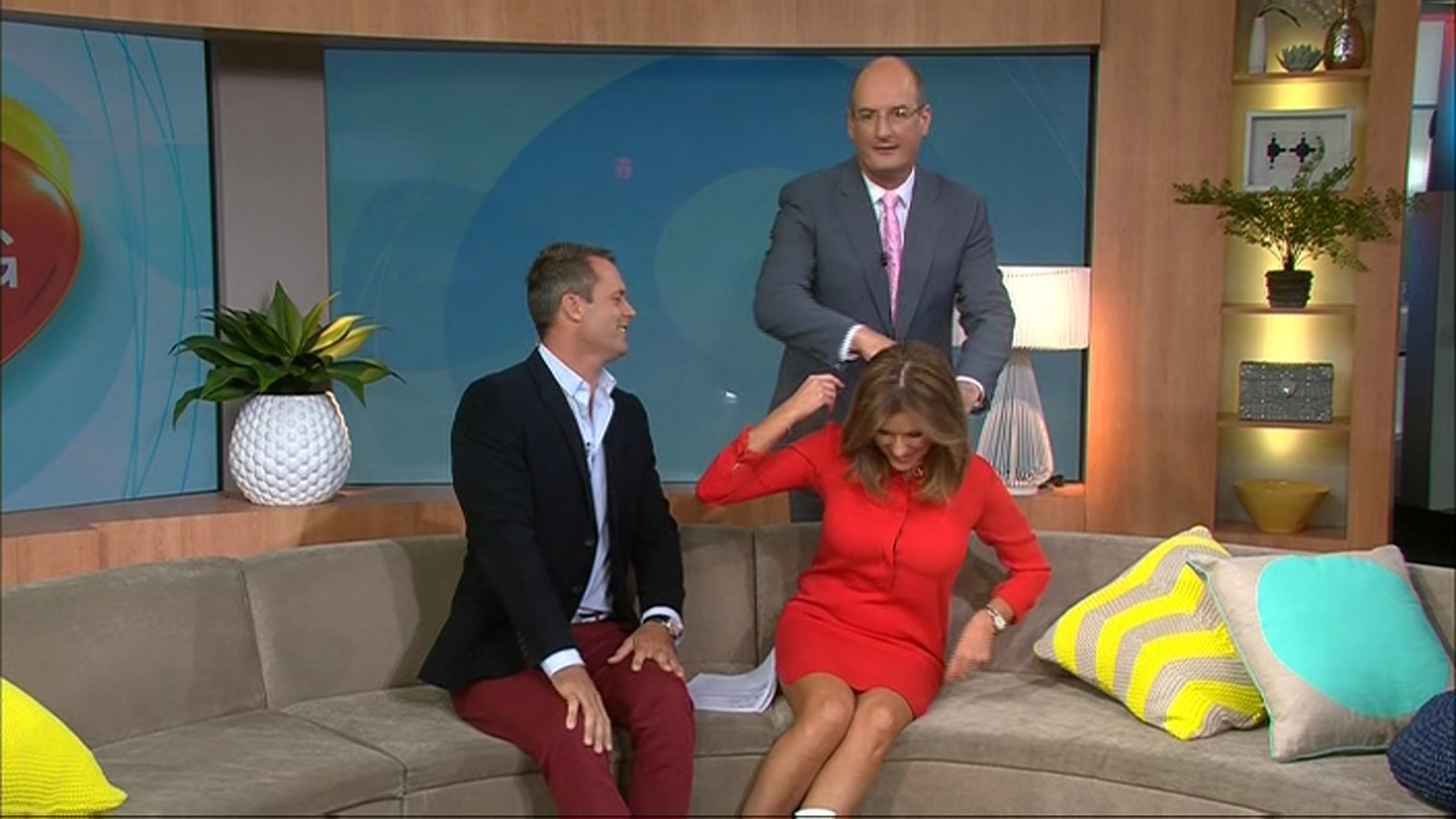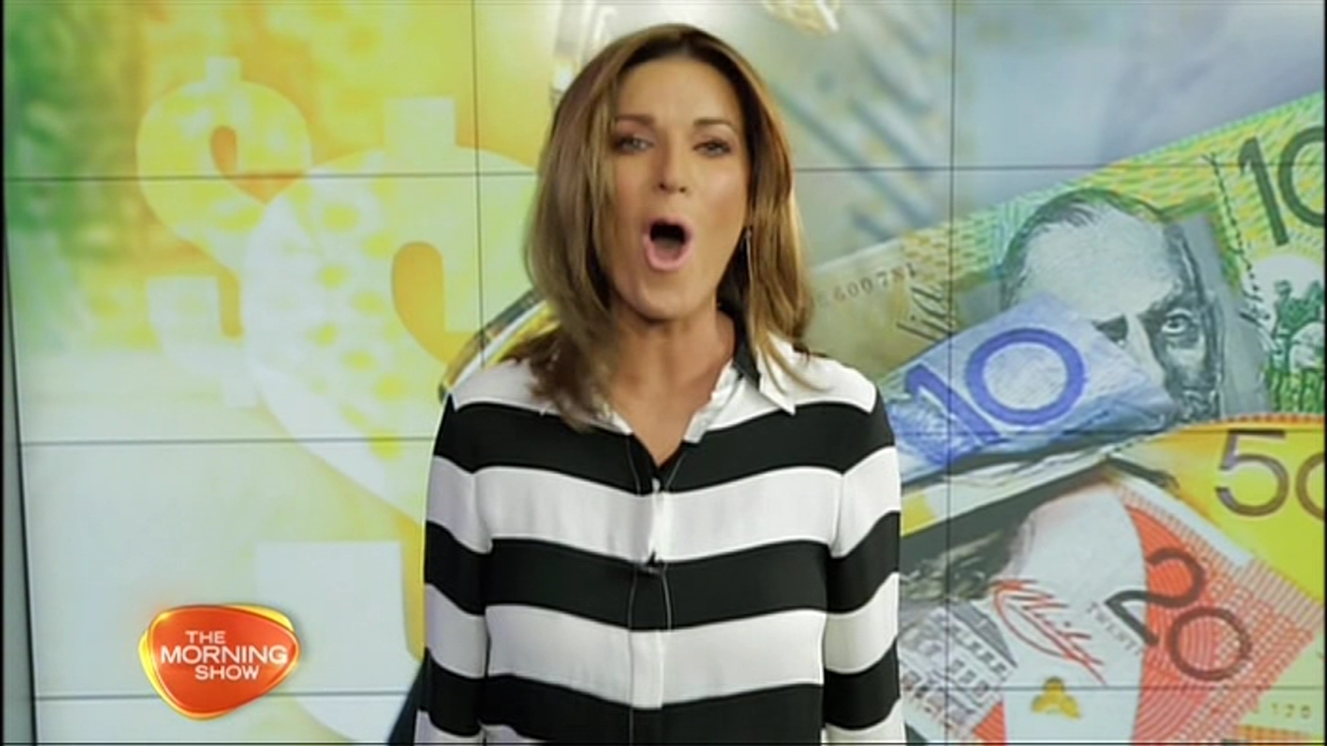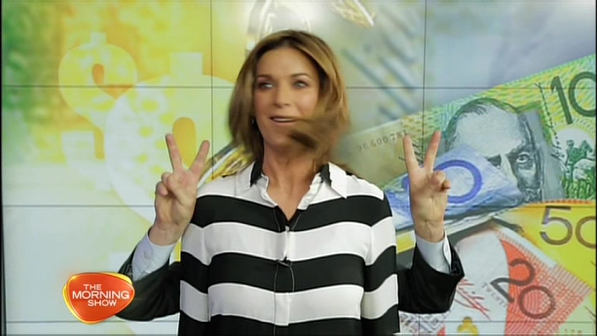 Long time viewer first time writer. First of all I would like to say a big thank you to all the cappers out there...awesome work. Narly thanks but I hope someone else still records the show...because on Monday 18th she was wearing such a short red dress that looked like an oversized shirt that about 30 - 45 minutes into the show the cameraman had changed the viewing angle so you couldn't see her thighs at all. However the best bit was at the start of the show when Kochie went up behind her to do something with her hair, we'll I'm not sure whether there was something to be seen there but she happily opened those legs a bit. She seems to wear sexier stuff when Larry isn't there. She had Tom Williams co-hosting.