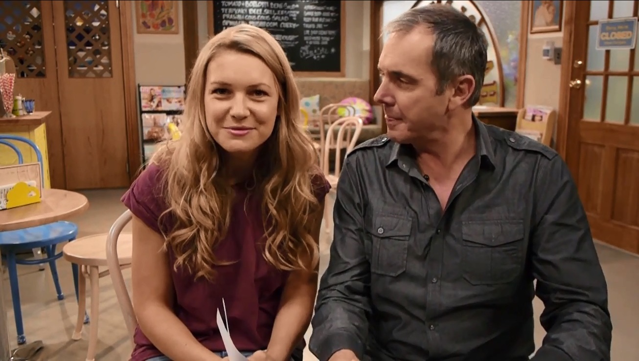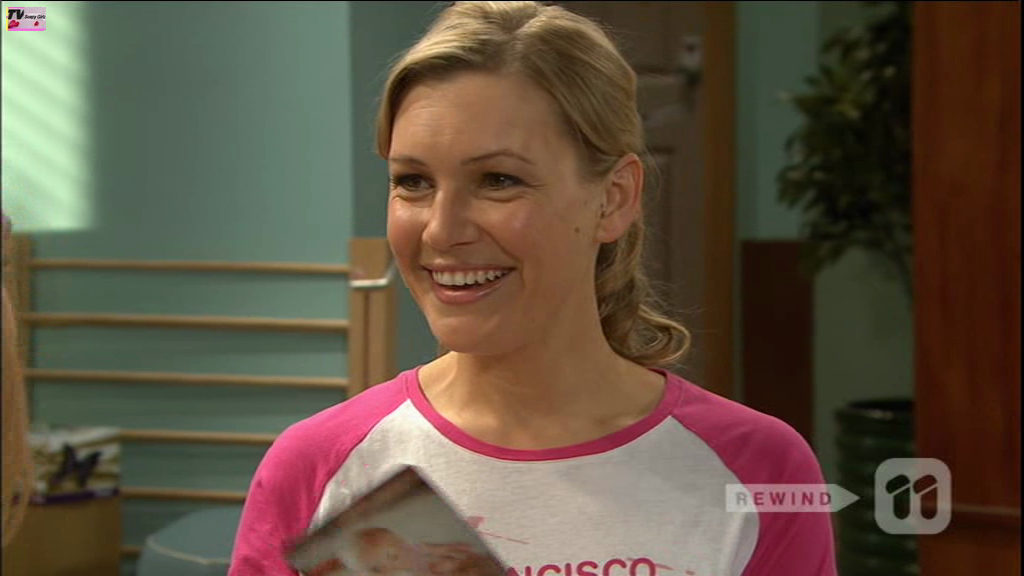 Saskia with Neighbours new puppy, who will make his on screen debut in February.
