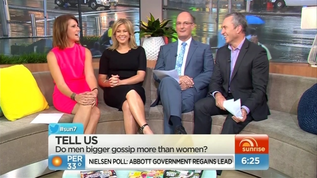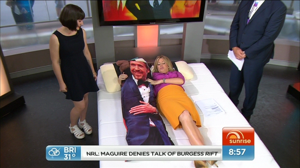 Sammy in bed with Ryan Gosling & James Dean this morning (Sunrise - 18 Feb 2014):