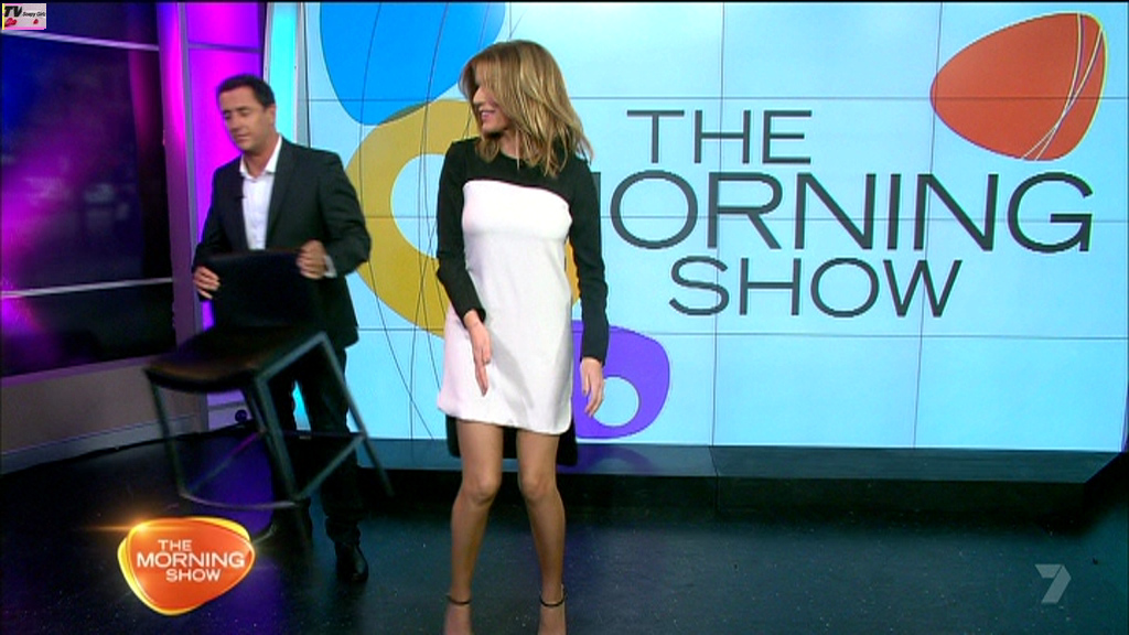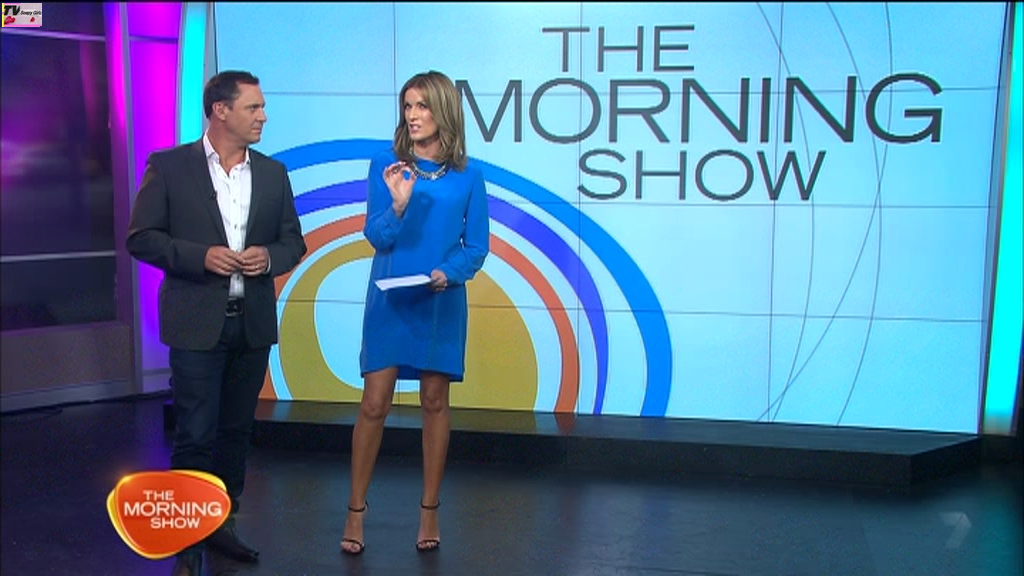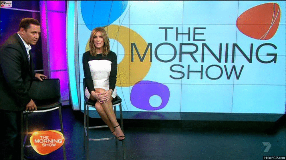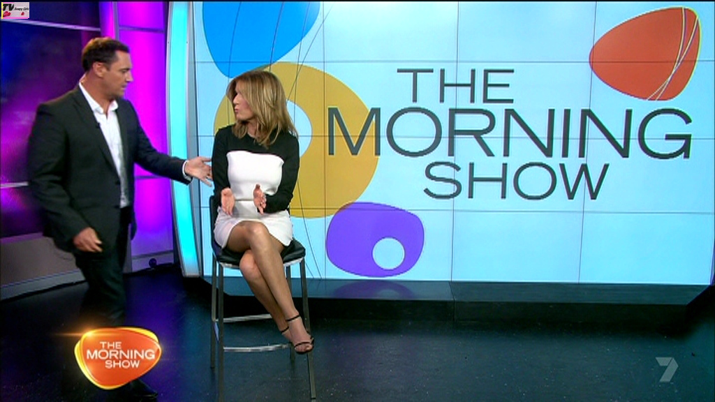 Would rather see KG's legs in a more natural skin tone, even pale white like the hot blonde girl she's interviewing here who has a wonderful set of youthful pins.