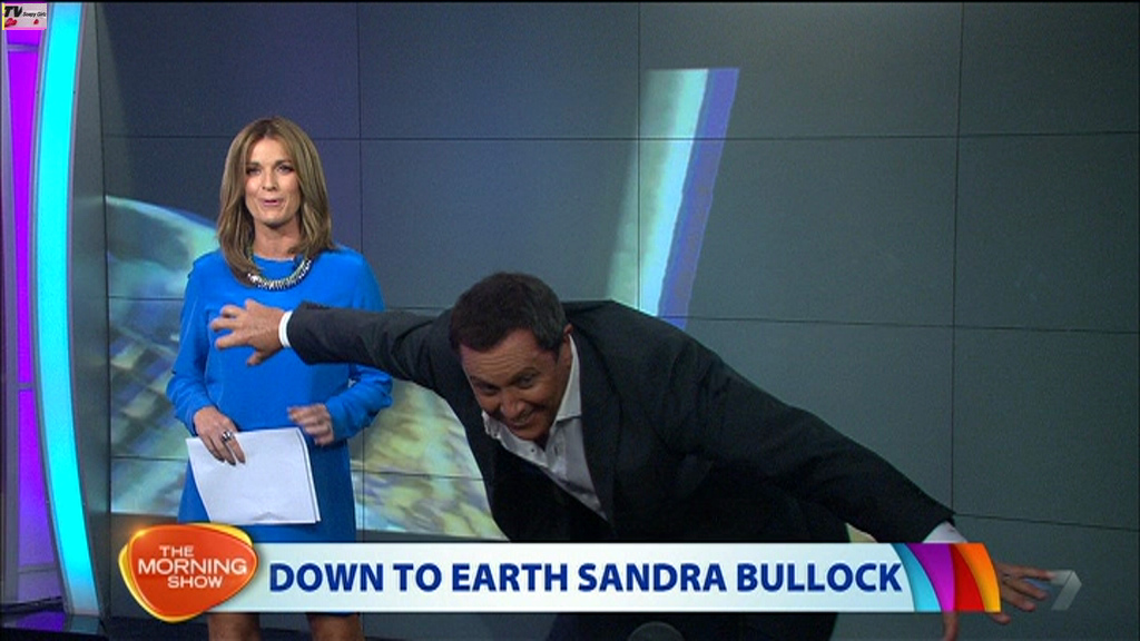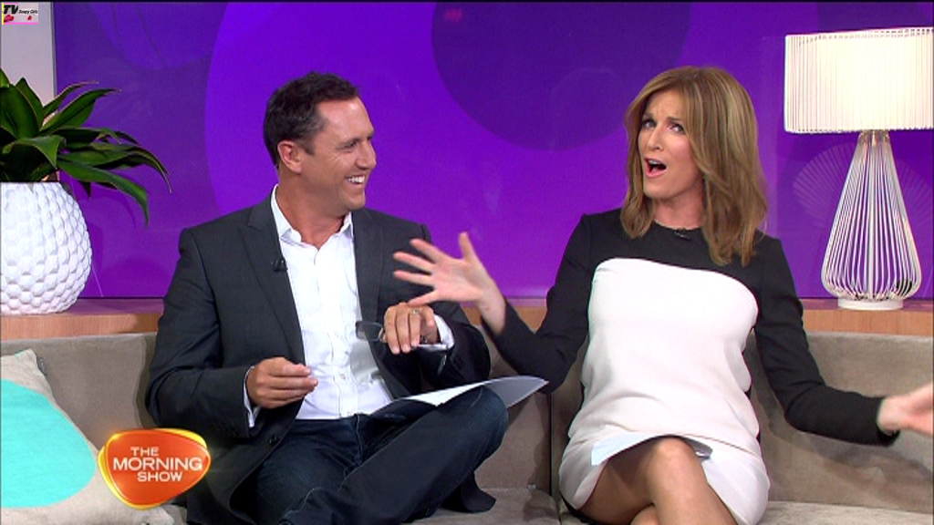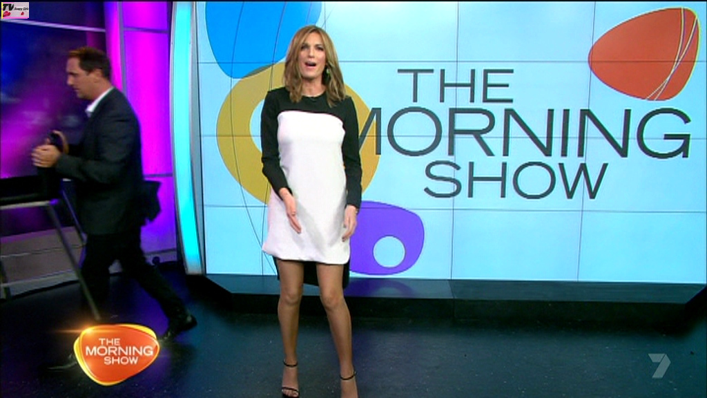 Would rather see KG's legs in a more natural skin tone, even pale white like the hot blonde girl she's interviewing here who has a wonderful set of youthful pins.