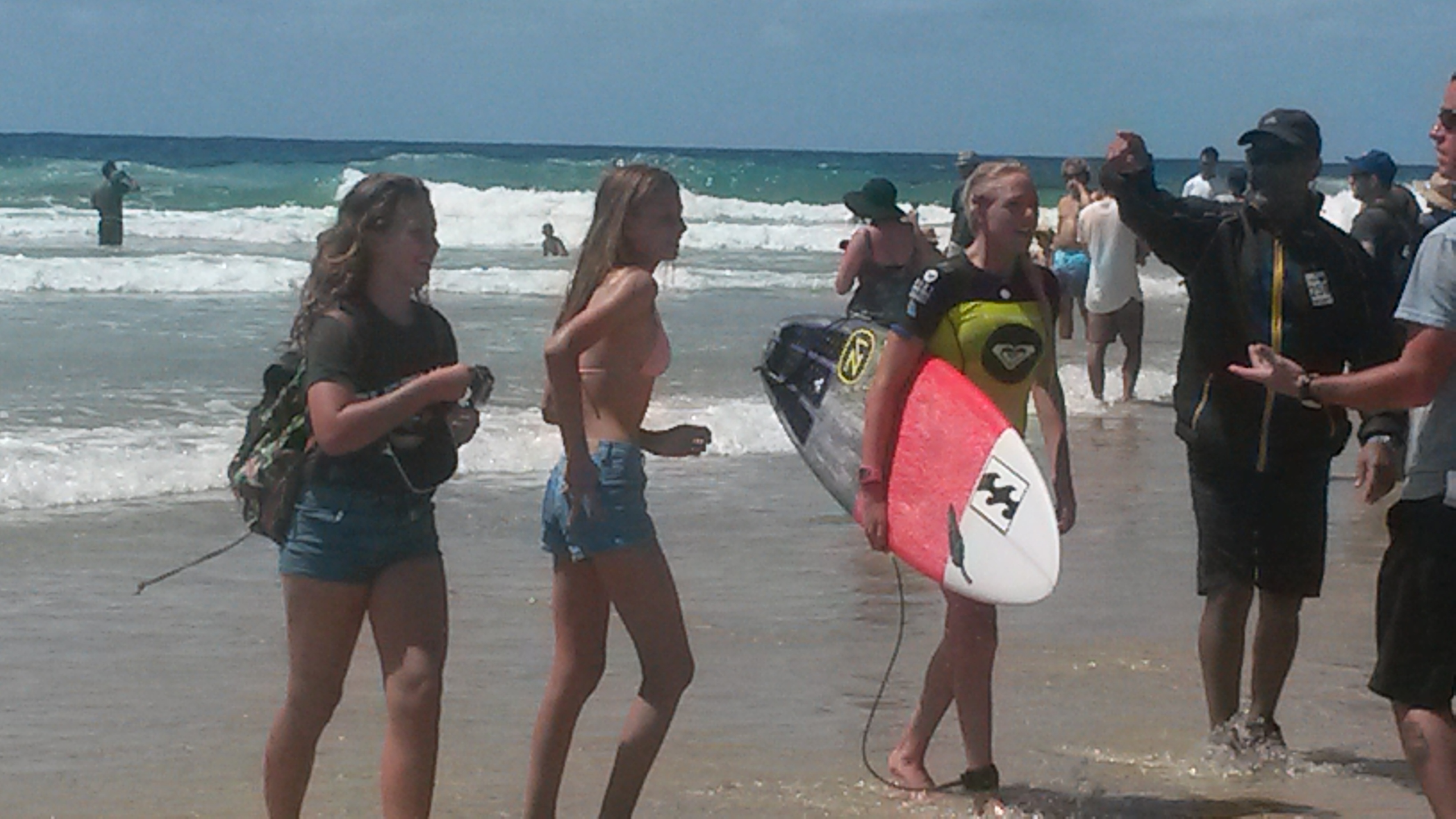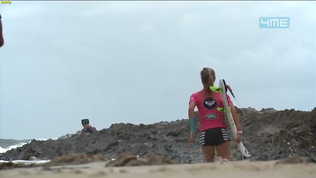 Sally coming in after her heat today in the Roxy Pro at Snapper Rocks on the Gold Coast pce229073