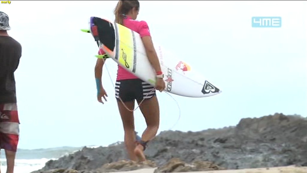 Sally coming in after her heat today in the Roxy Pro at Snapper Rocks on the Gold Coast pce229073