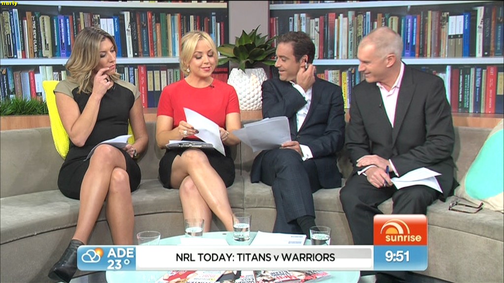 Monique looked very nice on Saturday, especially showing off her legs good cap times 8:17 to 8:22 and then again at 8:26 to 8:32am this morning (Saturday) on sunrise. Vavavoom!!! Would appreciate any caps. Thanks gents :)