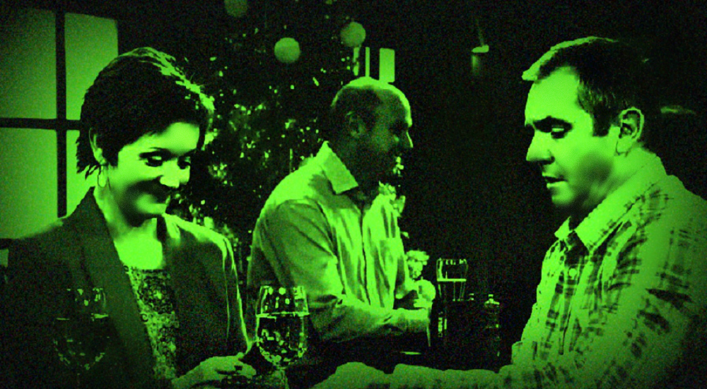 Susan, Judy and Cheryl walk into the pub all giggling.