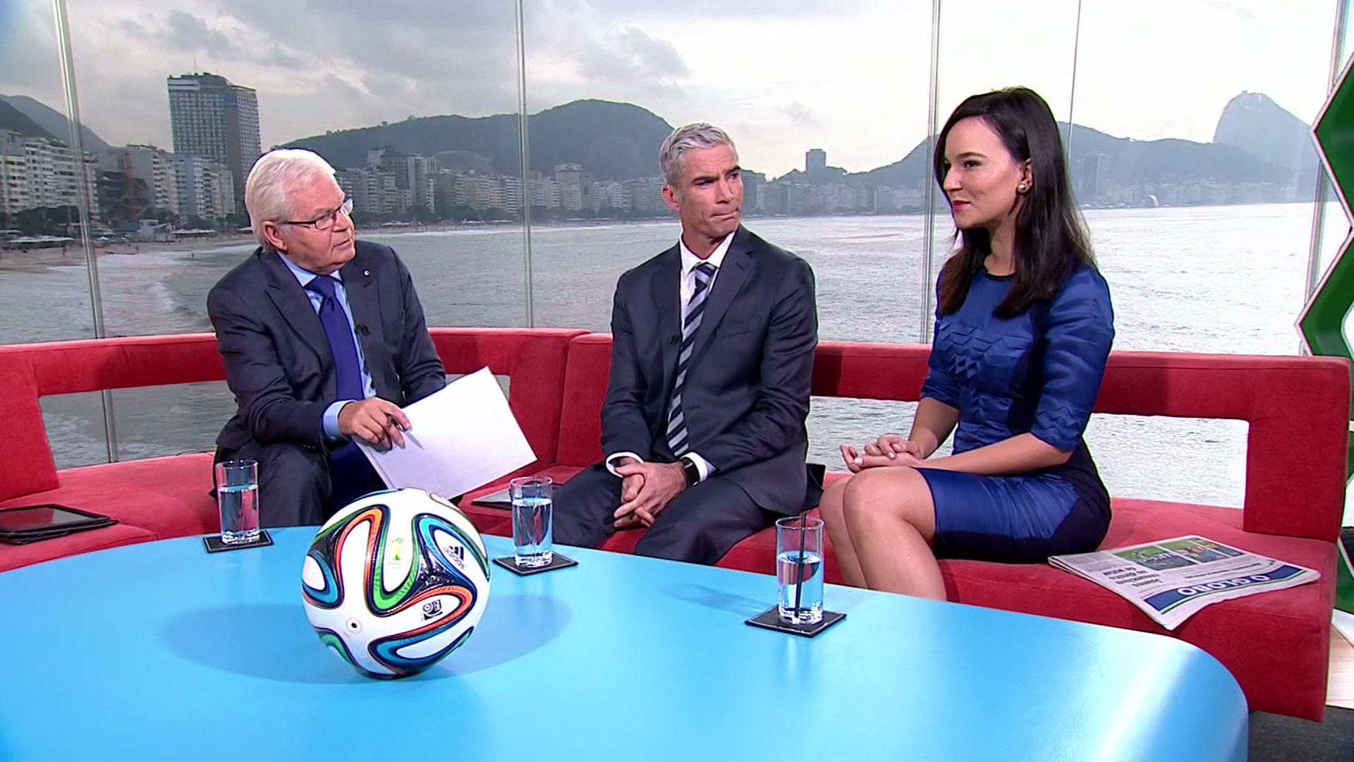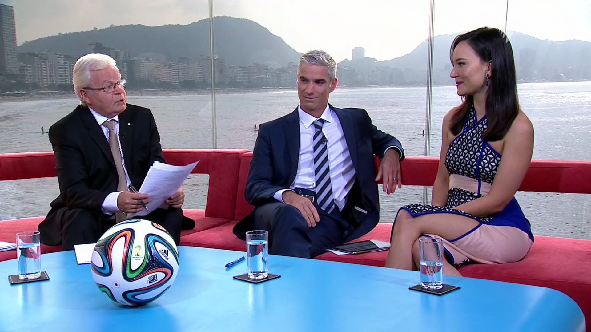 Gorgeous Brazilian reporter on this morning's World Cup show, named Fernanda de Paula. Hopefully she's a regular throughout the tournament.