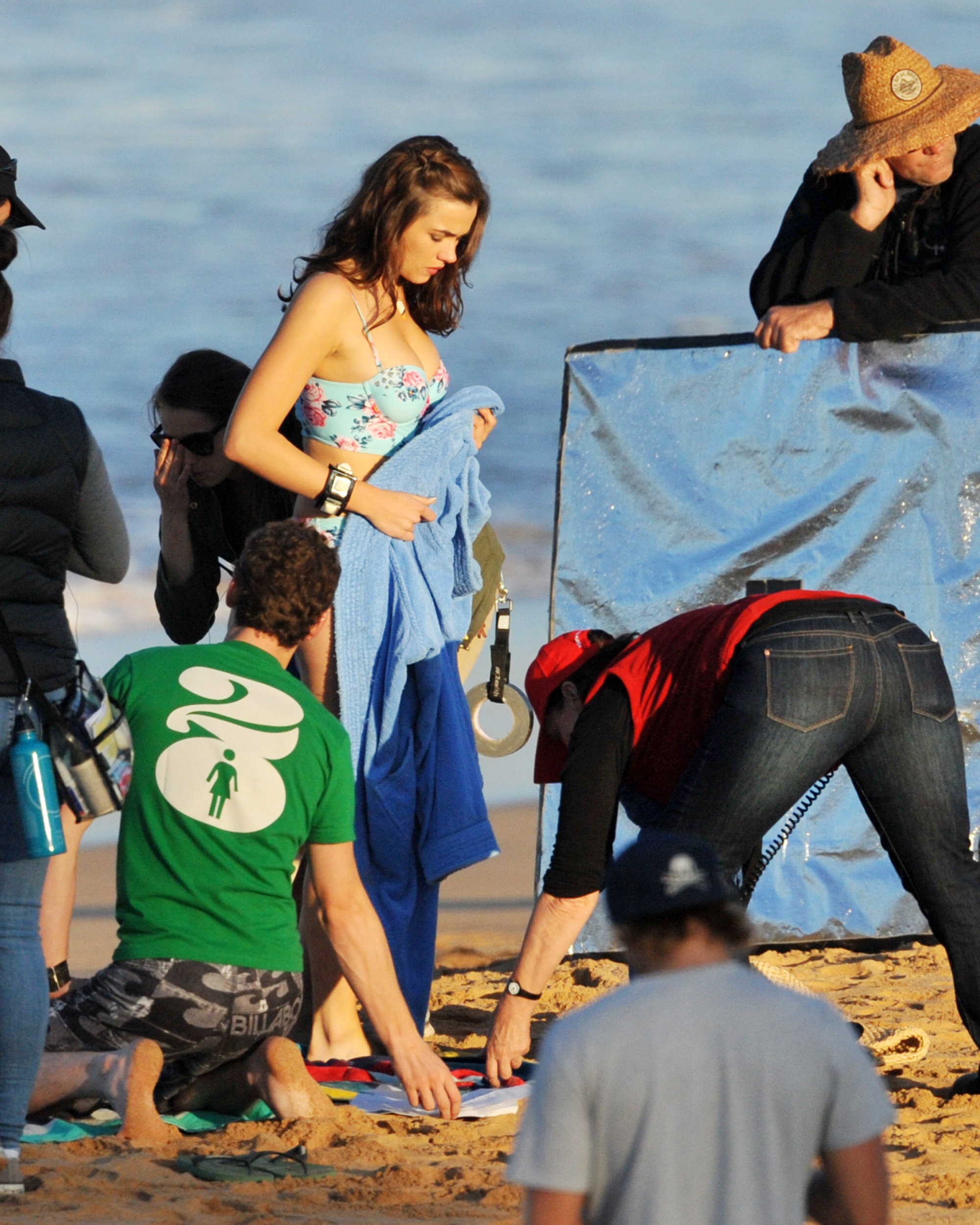 Found this funtastic bikini titty shot While she was laying down sun baking while on set Boobies yum yum ( o )( o )