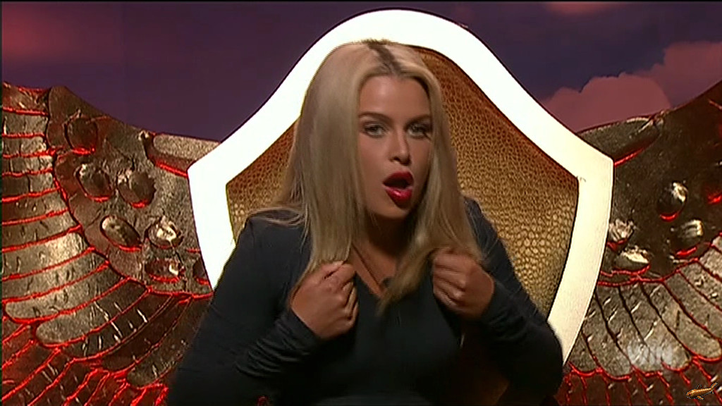 If someone can get the still's when Skye was told by big brother she is up for eviction, you can see straight through and the camera catches her nipple, and also up lisa's dress!