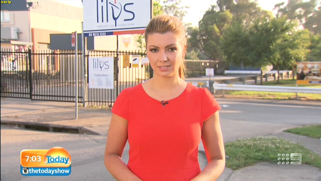 Quote: Handy hint for TV reporters . Service station water and a squeegee will not remove spilt coffee from a white dress. This explains the mid-sentence expletive