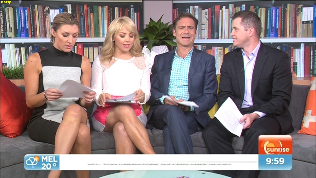 Monique looked pretty hot this morning, nice fringe, hot black/white stripey dress and nice red heels, some good legs shots today throughout show. at 7:52am segment, then sitting on high chairs, standing infront of big screen introducing segment and at the end of the show. Thalitha also looks hot as always. any caps appreciated