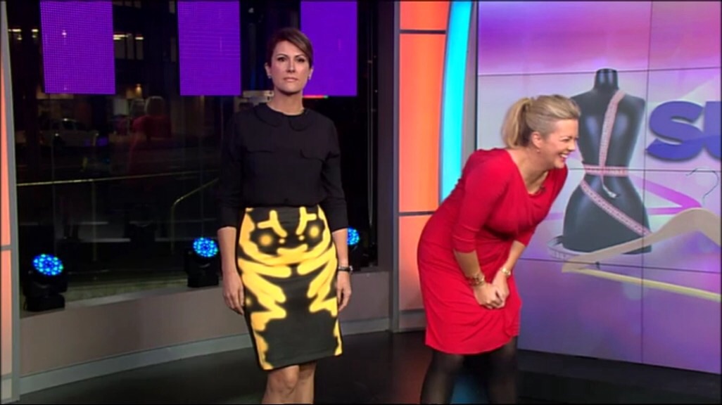 sam is looking magnificent today. that gorgeous red dress and soooo much tigh encased in black stockings. hope our fabulous cappers get lots of her