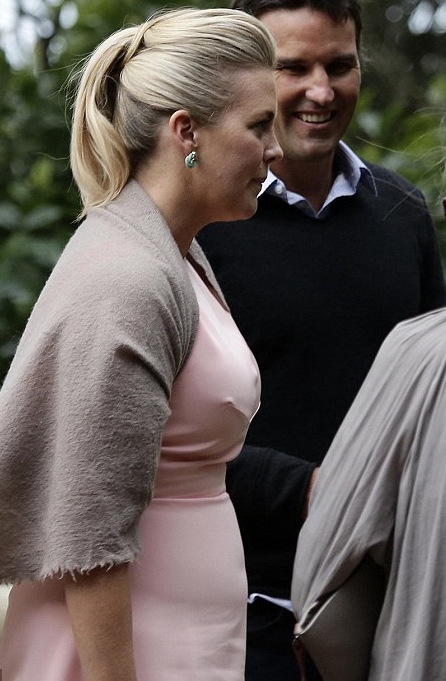 Obviously wearing some sort of bust reducer garment yesterday morning. I know she has lost a few kgs again but she's nowhere NEAR that small !!!! Still gorgeous of course