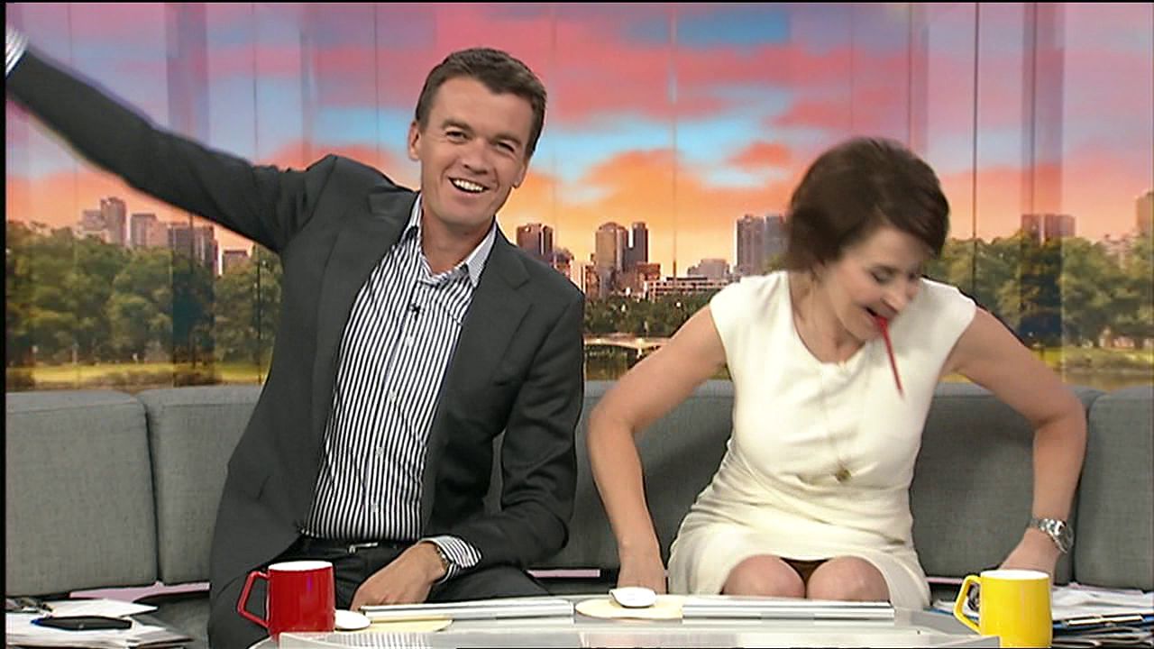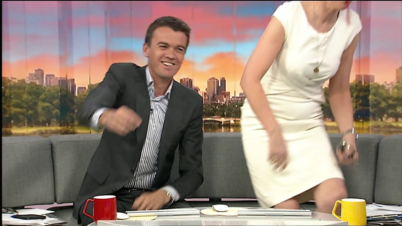 pce229073 wrote: It was about 8:04am ..it was a joke about bowling a maiden over.re Movie with aussie cricket player. .she moved quickly and yes a quick upskirt pce229073  Thanks pce.. Wasn't sure what time it was. Just caught it as I was walking past this morning. Also just want to say thanks to all the cappers too.
