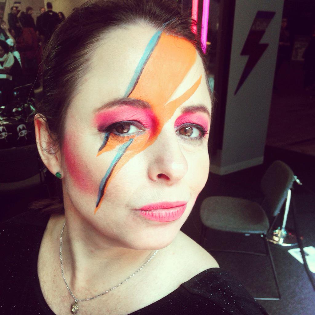 A professional did my face at the @DoubleJRadio broadcast for the Bowie exhibition. Much better than my effort.