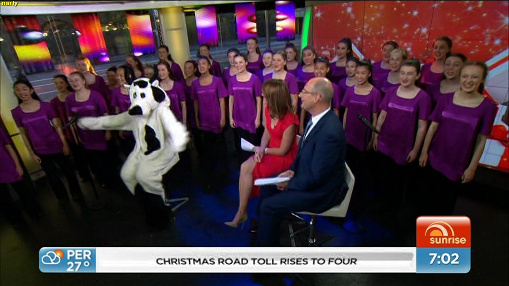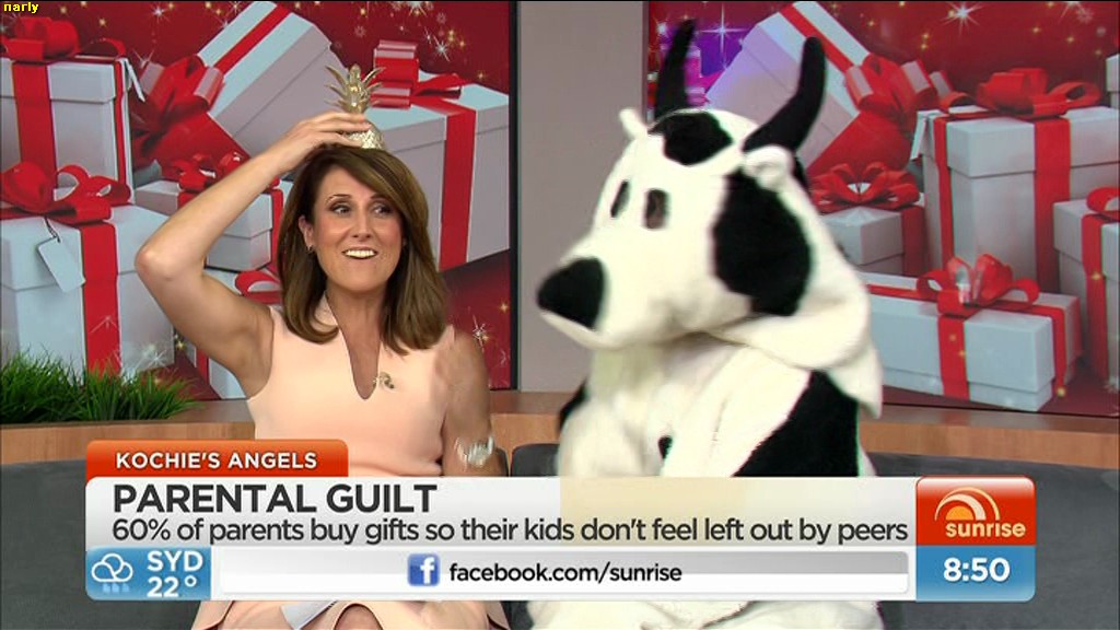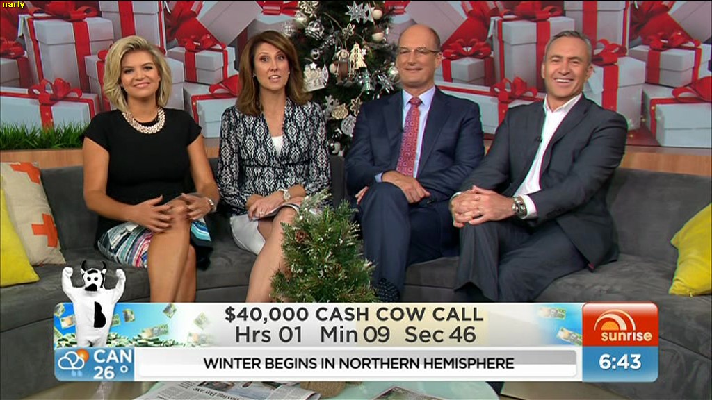 phunkyfeelone wrote: narly wrote: That stupid bloody xmas tree has been annoying me all week  I think they refer to him as "Kochie"  He's just an idiot , proven by trying to sit on Nat's lap this morning . which also stuffed up some leg shots .