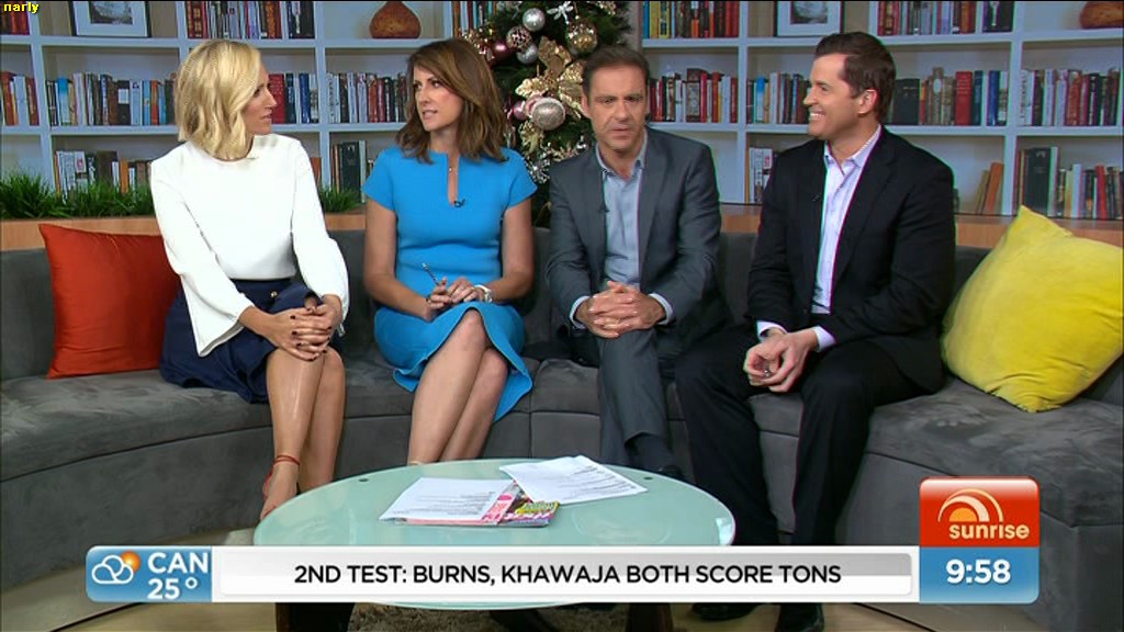 narly wrote: phunkyfeelone wrote: narly wrote: That stupid bloody xmas tree has been annoying me all week  I think they refer to him as "Kochie"  He's just an idiot , proven by trying to sit on Nat's lap this morning . which also stuffed up some leg shots .  Sitting on Nat's lap? Mmmm, yeah, who'd do that... Just putting a thought out there - with the occasional discussions about whether or not Nat could be or should be the co-host of Sunrise, I'm thinking one hosting permutation that 7 haven't tried yet as far as I know is having Nat and Sam co-host Sunrise; ABC Breakfast have done that several times and the sky didn't fall in, having two female co-hosts worked very well and their version of Kochie (Michael Rowland and his Dad jokes etc) wasn't missed at all - nothing against Michael though, that said. I'm not a huge fan of Sam or her work and I reckon of late she's looked a bit tuned-out at times too - but as far as I know both Sam and Nat are capable enough and I also reckon Nat and Sam are different enough to potenitally complement each other as co-presenters. Sunrise on 7 hosted by the two gals would also be a very different beast to the main competitor over there on 9 - even now, the 9 show looks rather like a suit convention when bloody Wilkins sits at the table too. I'd like to see 7 give it a try - what do you think? If 7 want to break more new ground, they could keep Kochie on but turn him into a roving "money reporter" (get him out of the studio anyway), rather like Eddie their roving weather gal? There's got to be some interesting places they could send Kochie, after all...