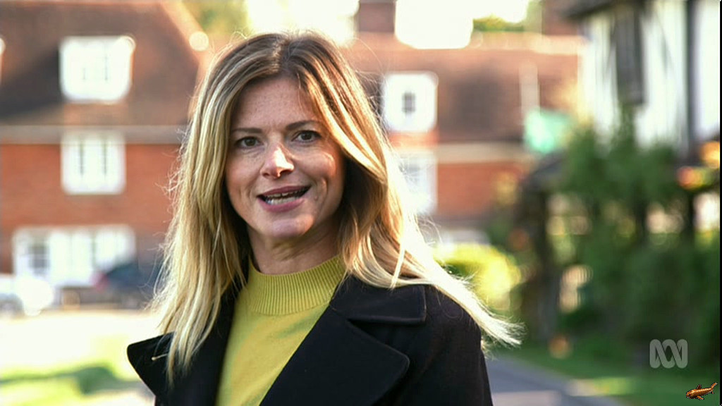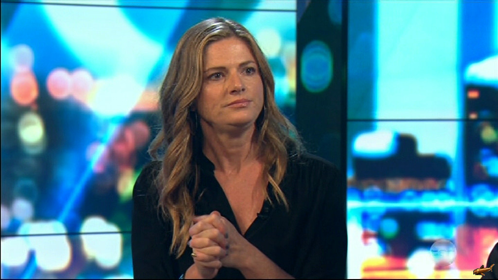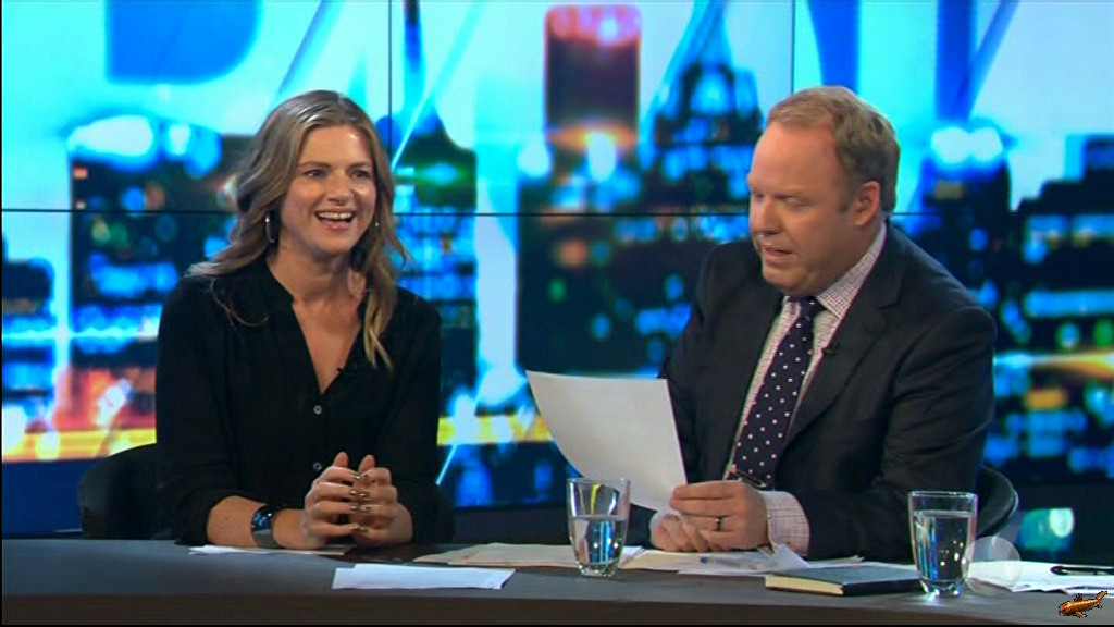 Julia showing some nice thighs in sheer leggings, and giving a quick 'Basic Instinct' for the camera on 'Home Delivery' this evening.